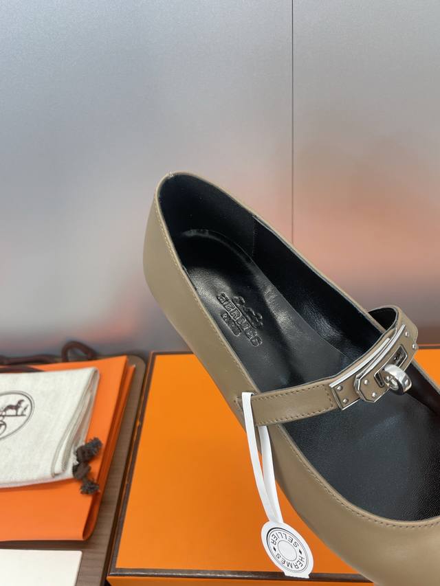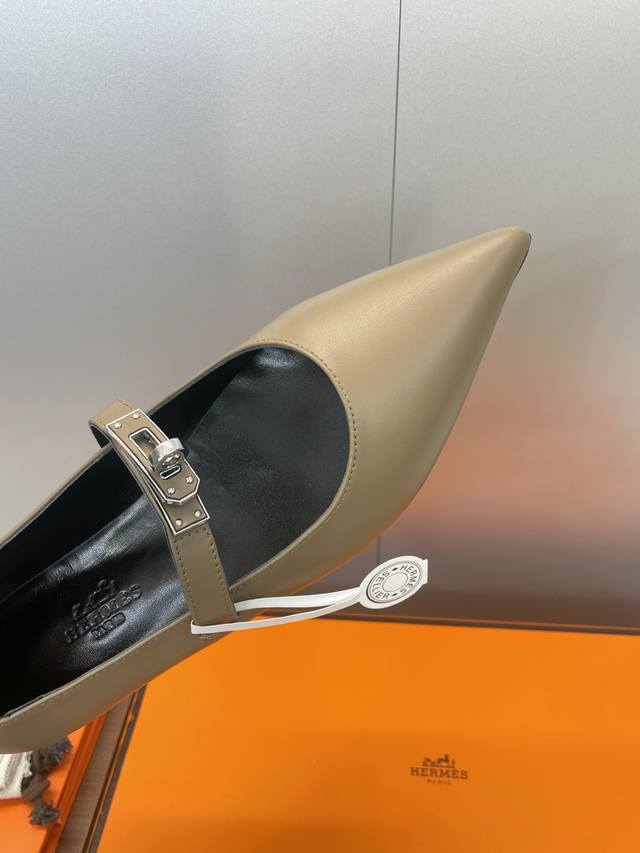 工厂P价P 莞货 代购级 爱马仕 Hermes 2025秋冬新款 Lover 拼色女鞋 H家经典Kelly五金皮带平底尖头气质单鞋 材质:鞋面进口小牛皮 +水染