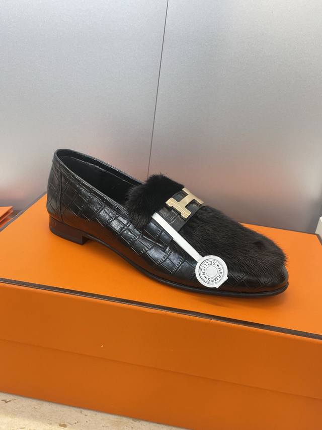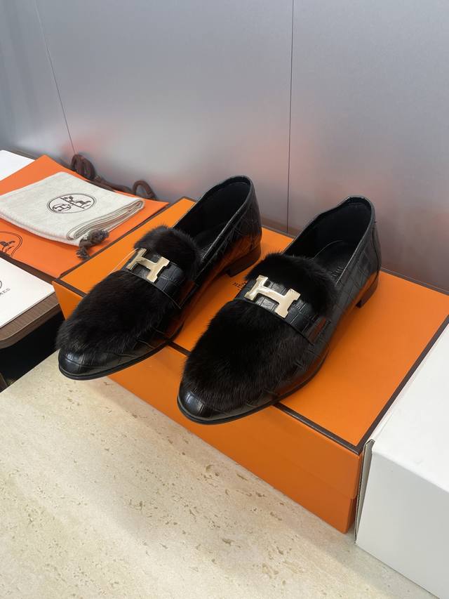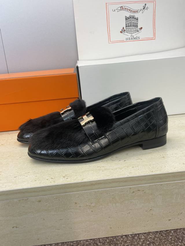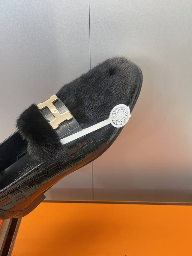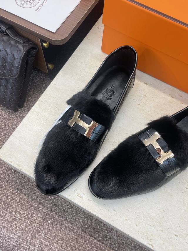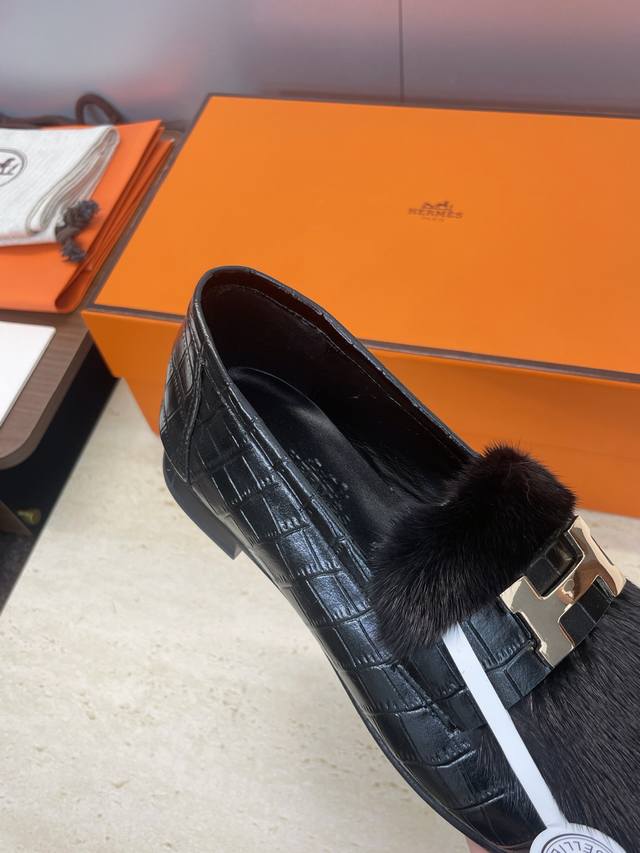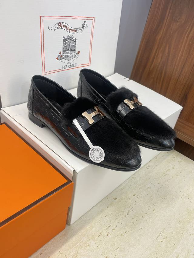 工厂P价P 莞货 代购级 Hermes 爱马仕 2025秋冬新款Royal 拼色低跟羊羔毛芭蕾舞女鞋 H家字母Logo五金扣平底圆头防寒保暖乐福鞋 材质:进口小牛皮 进口羊猄皮 进口羊羔毛+水染羊皮水里+意大利真皮大底 Size: 35-43 34.40.41.42.43定制不退换