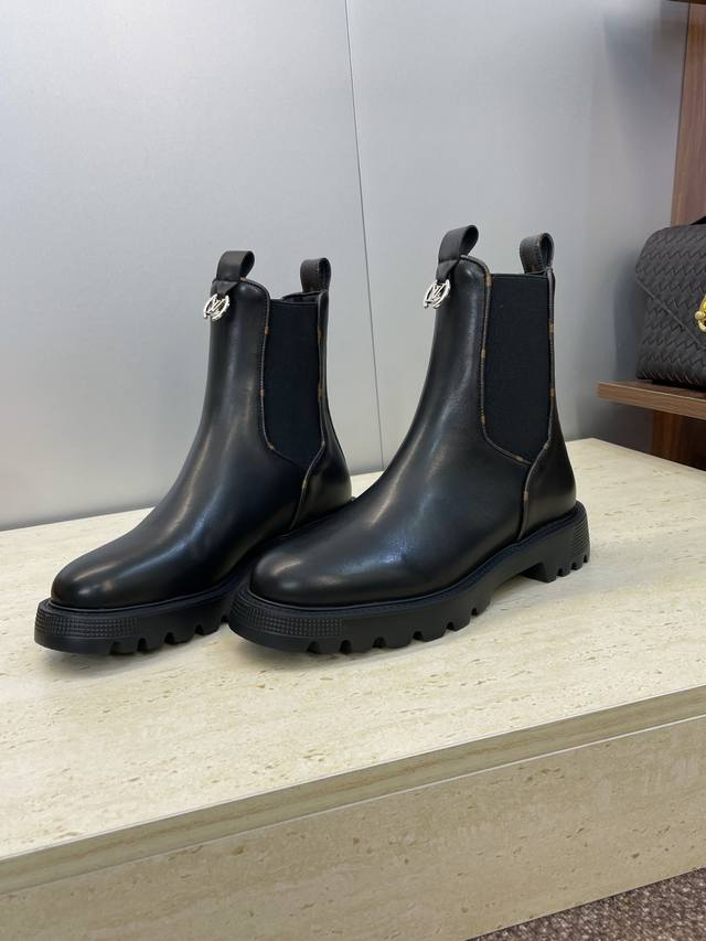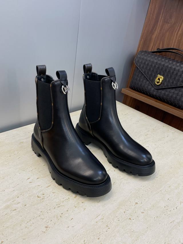 工厂P价P 莞货 代购级 Louis Vuitton* 2025秋冬新款切尔西风格弹力机车短靴 Lv字母Logo五金扣厚底低跟拼色一脚蹬骑士靴 材质:鞋面进口小牛皮+水染牛皮内里+原版开模Ip大底 Size:女码35-41 40.41定制不退换