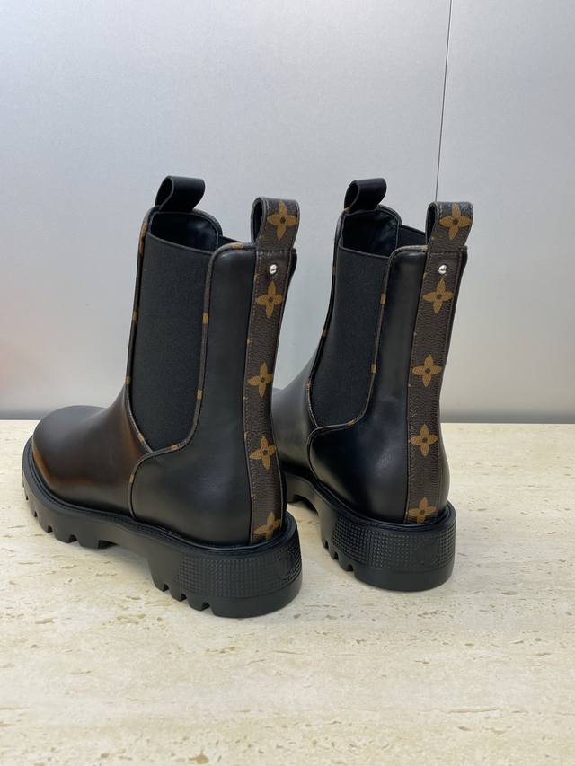 工厂P价P 莞货 代购级 Louis Vuitton* 2025秋冬新款切尔西风格弹力机车短靴 Lv字母Logo五金扣厚底低跟拼色一脚蹬骑士靴 材质:鞋面进口小