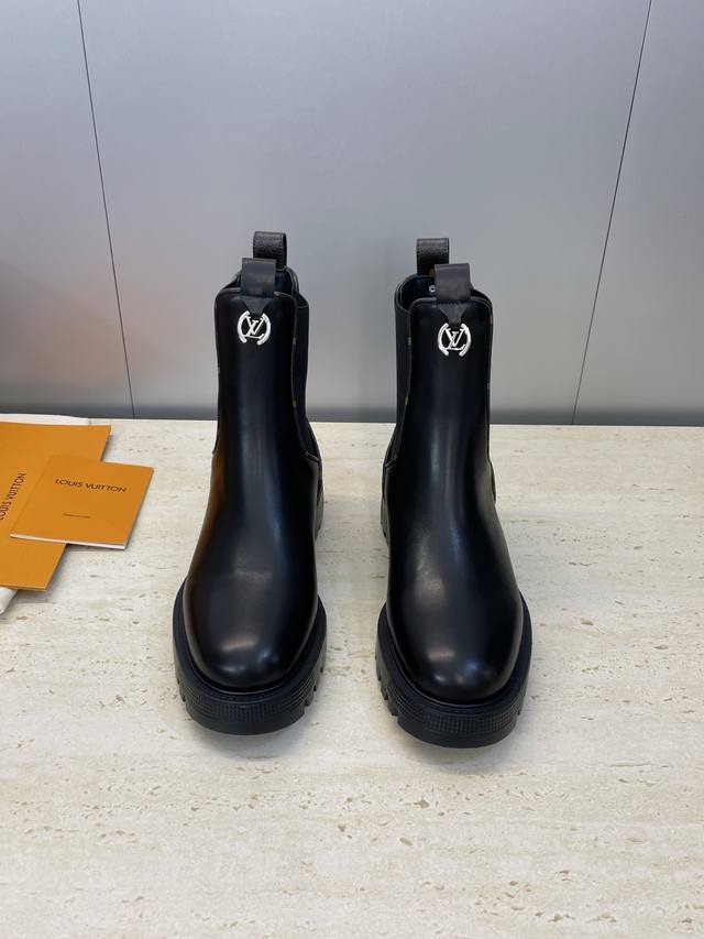 / 工厂P价P 莞货 代购级 Louis Vuitton* 2025秋冬新款切尔西风格弹力机车短靴 Lv字母Logo五金扣厚底低跟拼色一脚蹬骑士靴 材质:鞋面进口小