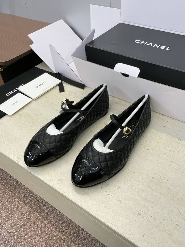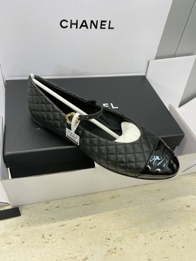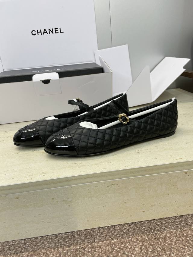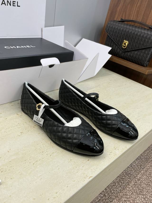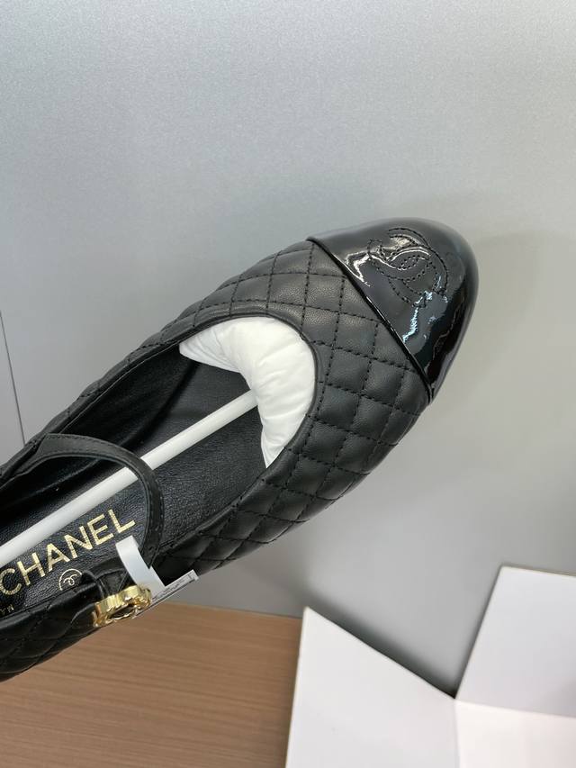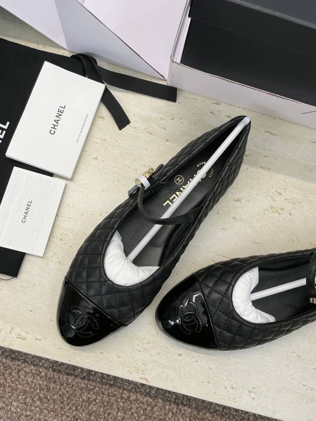 / 工厂P价P 莞货 顶级代购版 Chanel 香奈儿 2025秋冬新款菱格电绣玛丽珍芭蕾舞娃娃女鞋 小香字母Logo五金扣平底圆头拼色单鞋 材质:鞋面进口全粒面羊