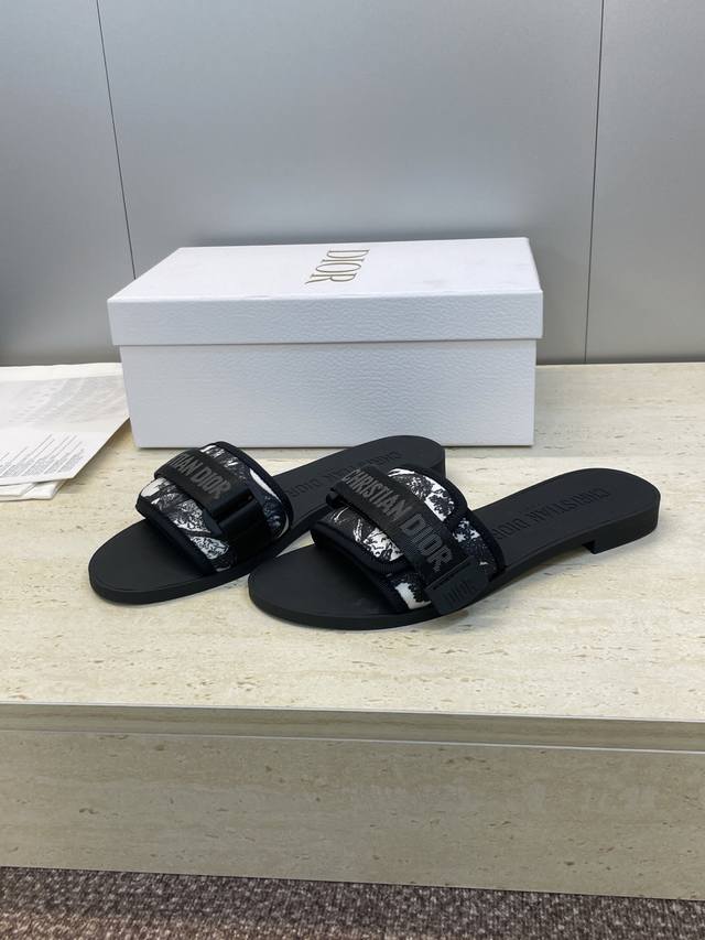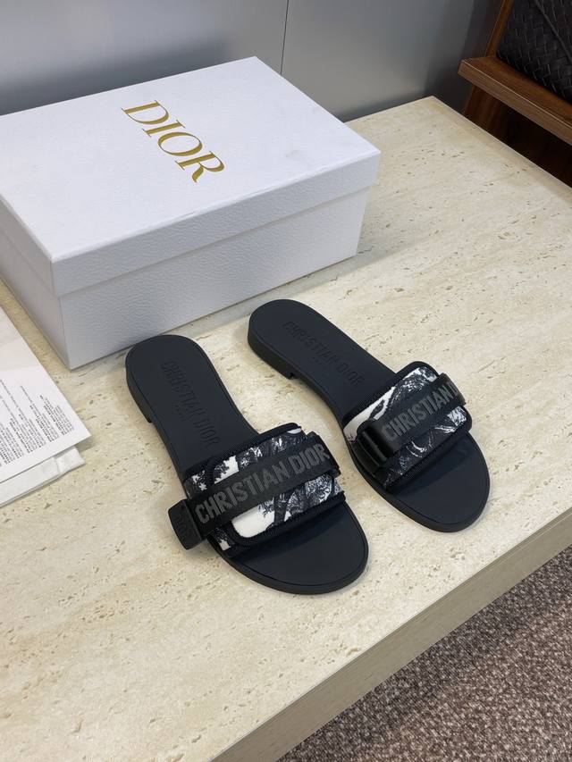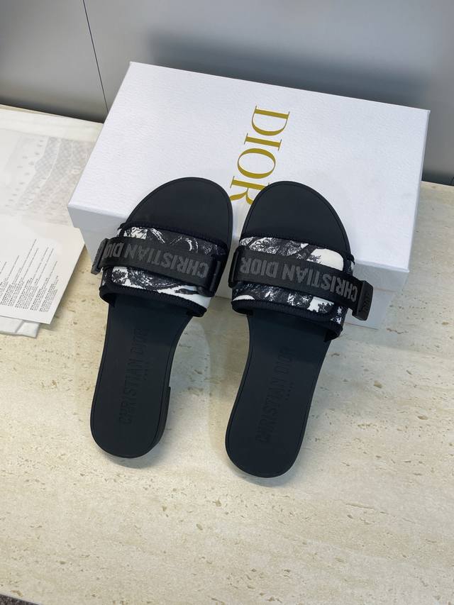/ 工厂P价P 迪奥Dior 2025春夏最新色系Evolution迷彩女鞋 平底拼色露趾字母Logo魔术贴凉拖鞋 材质:原版定制3D立体刺绣鞋面+原版开模Tpu大