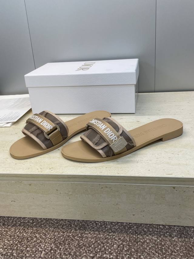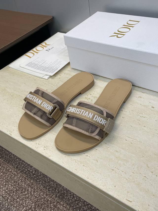 工厂P价P 迪奥Dior 2025春夏最新色系Evolution迷彩女鞋 平底拼色露趾字母Logo魔术贴凉拖鞋 材质:原版定制3D立体刺绣鞋面+原版开模Tpu大底 Size:35 42 40.41.42定制不退换