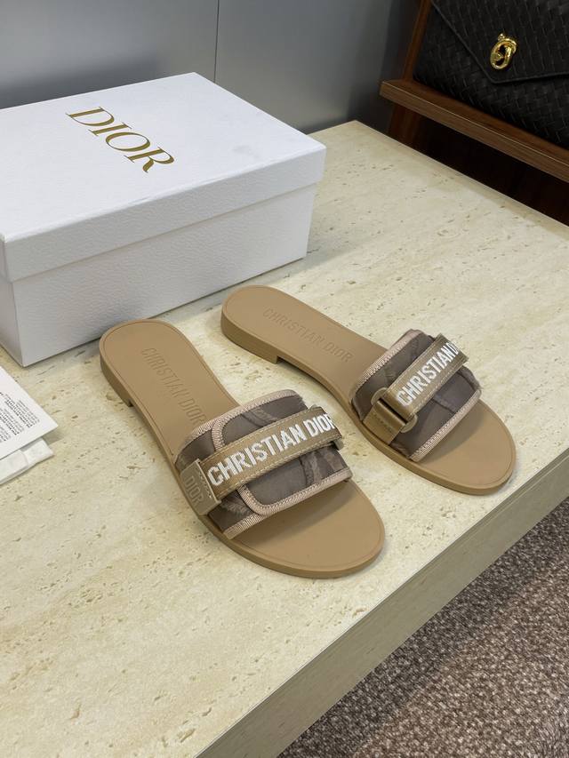 / 工厂P价P 迪奥Dior 2025春夏最新色系Evolution迷彩女鞋 平底拼色露趾字母Logo魔术贴凉拖鞋 材质:原版定制3D立体刺绣鞋面+原版开模Tpu大