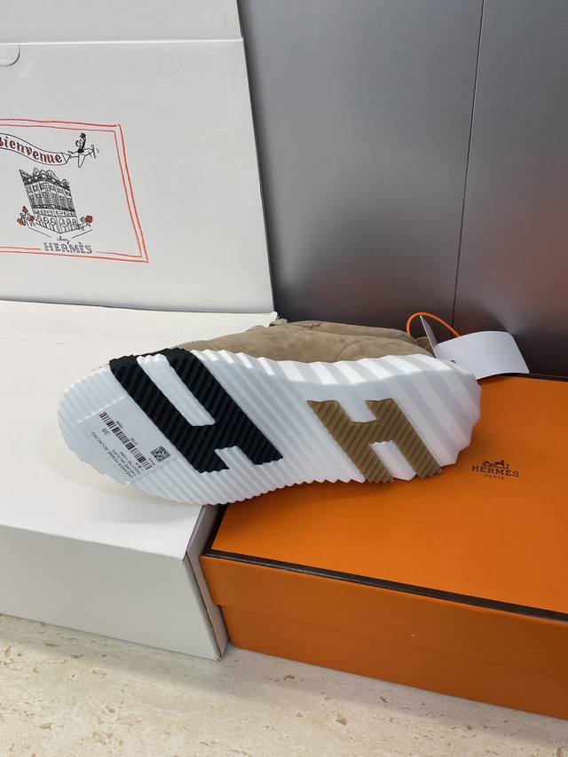 工厂P价P 配全套飞机盒 莞货 顶级版 爱马仕 Hermes 2025秋冬经典情侣款 Bouncing 休闲系带百搭运动鞋 H家厚底时尚风格拼色跑鞋 材质:鞋面进口羊猄皮 进口小牛皮+水染羊皮内里+原版开模大底 底厚:2.5Cm Size: 女码35-42 40.41.42定制不退换 男码39-46 39.46定制不退换