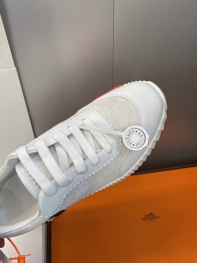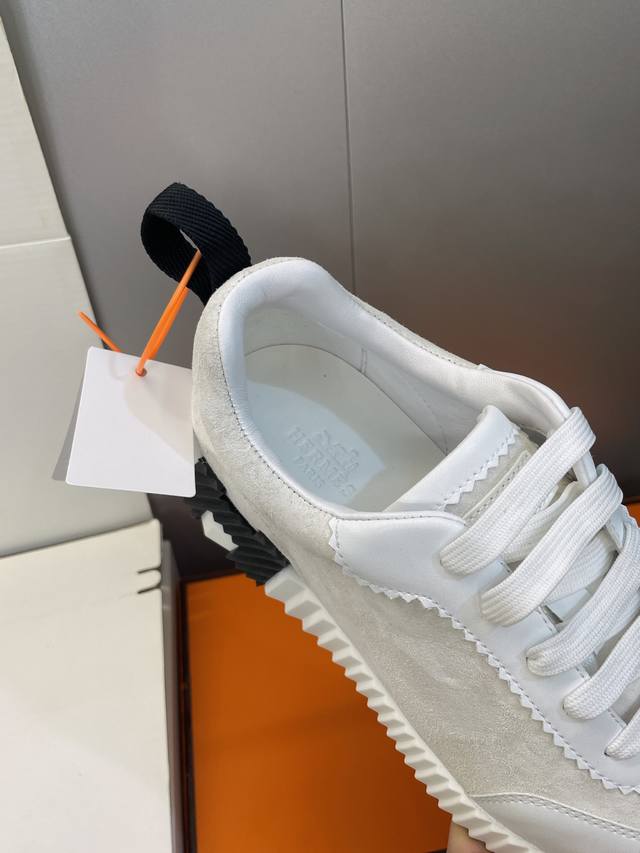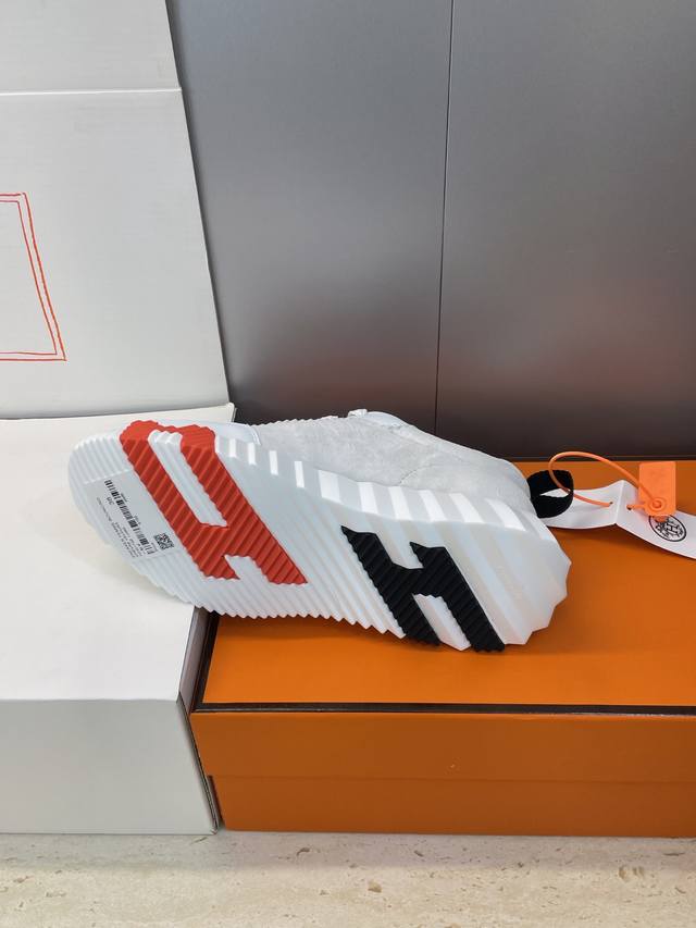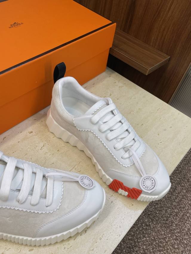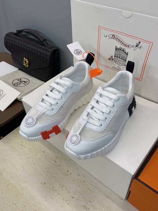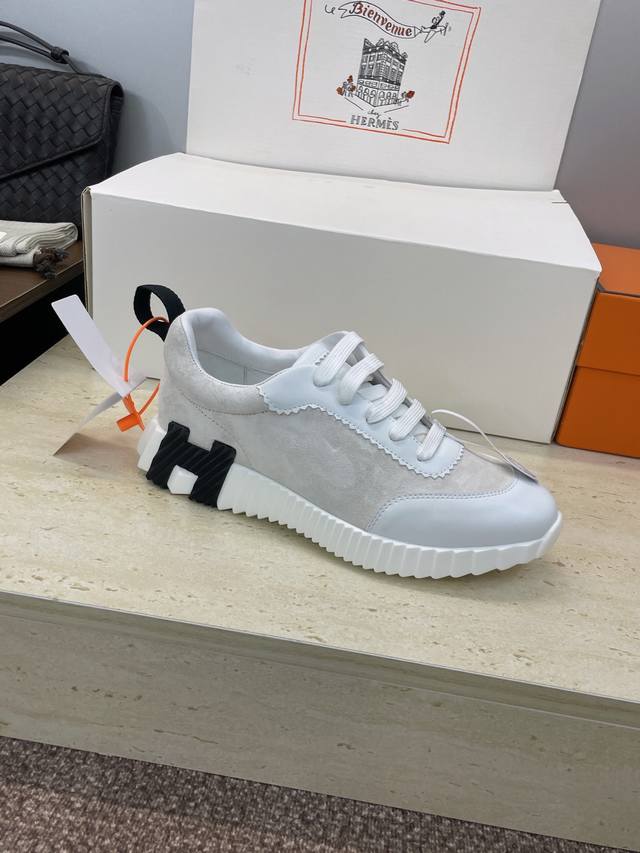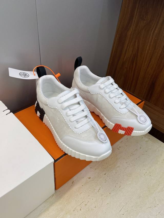 工厂P价P 配全套飞机盒 莞货 顶级版 爱马仕 Hermes 2025秋冬经典情侣款 Bouncing 休闲系带百搭运动鞋 H家厚底时尚风格拼色跑鞋 材质:鞋面