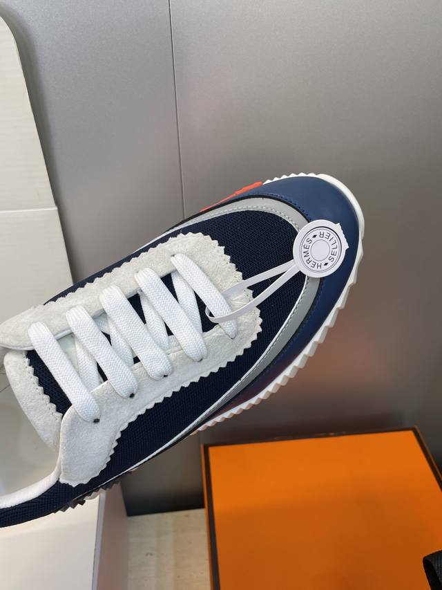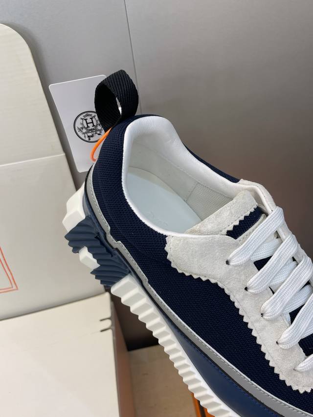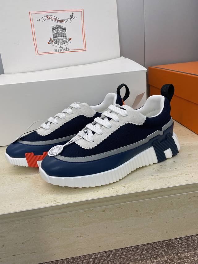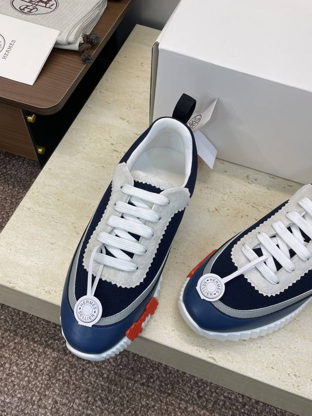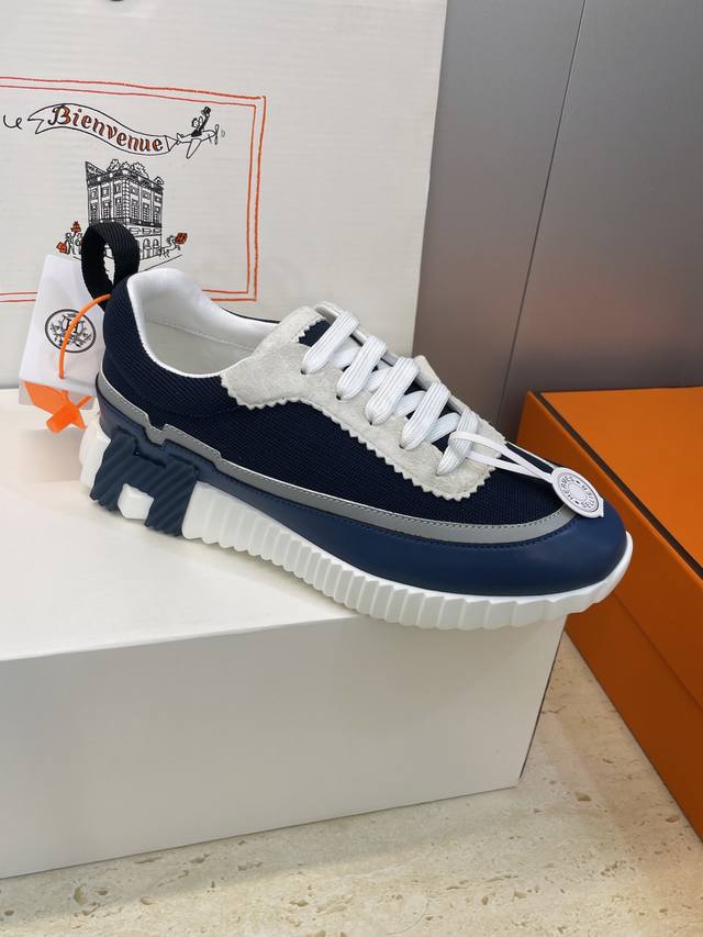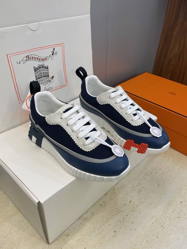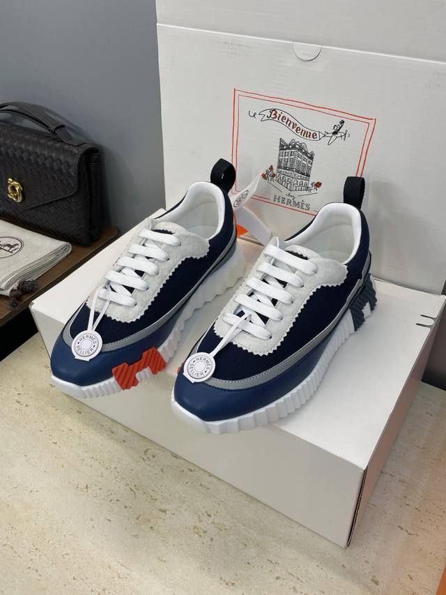 工厂P价P 配全套飞机盒 莞货 顶级版 爱马仕 Hermes 2025秋冬经典情侣款 Bouncing 休闲系带百搭运动鞋 H家厚底时尚风格拼色跑鞋 材质:鞋面