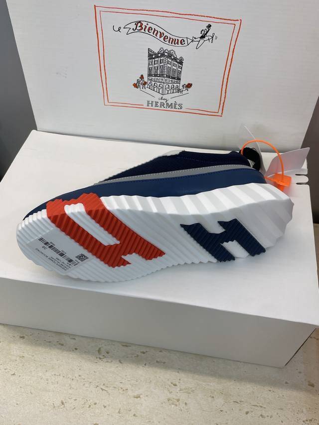 工厂P价P 配全套飞机盒 莞货 顶级版 爱马仕 Hermes 2025秋冬经典情侣款 Bouncing 休闲系带百搭运动鞋 H家厚底时尚风格拼色跑鞋 材质:鞋面进口环保透气网眼布拼接进口羊猄皮 小牛皮+水染羊皮内里+原版开模大底 底厚:2.5Cm Size: 女码35-42 40.41.42定制不退换 男码39-46 39.46定制不退换