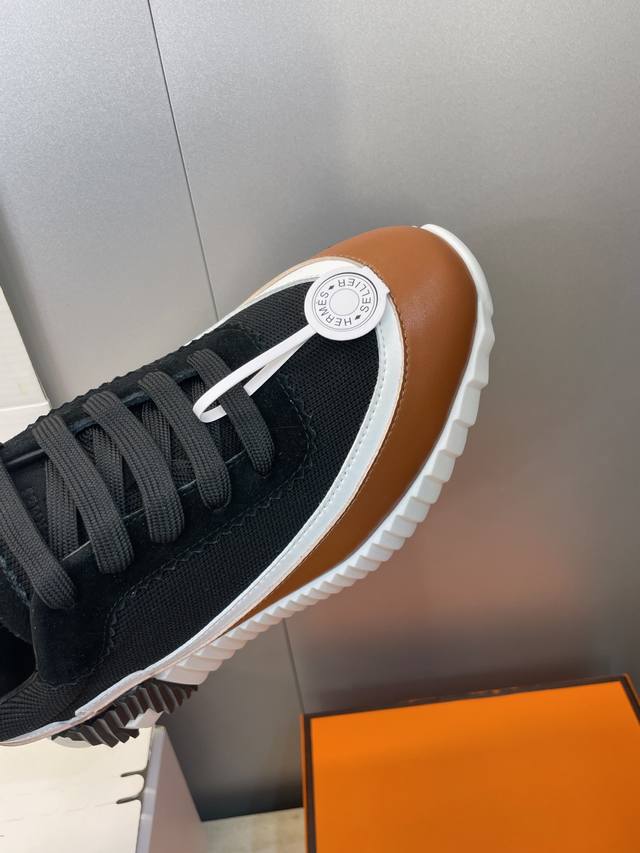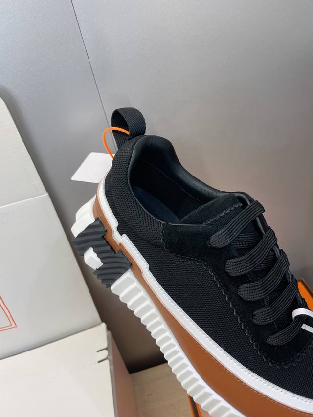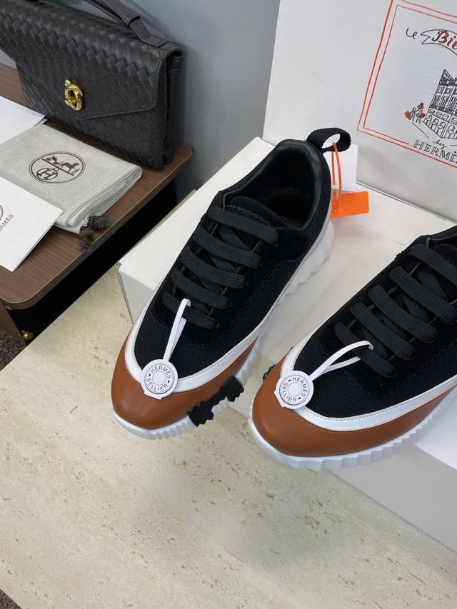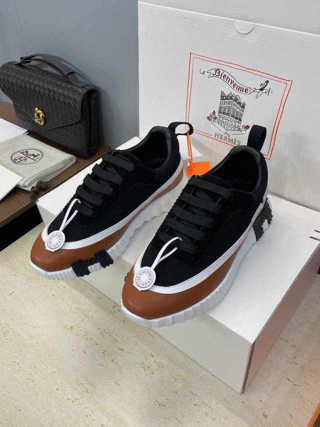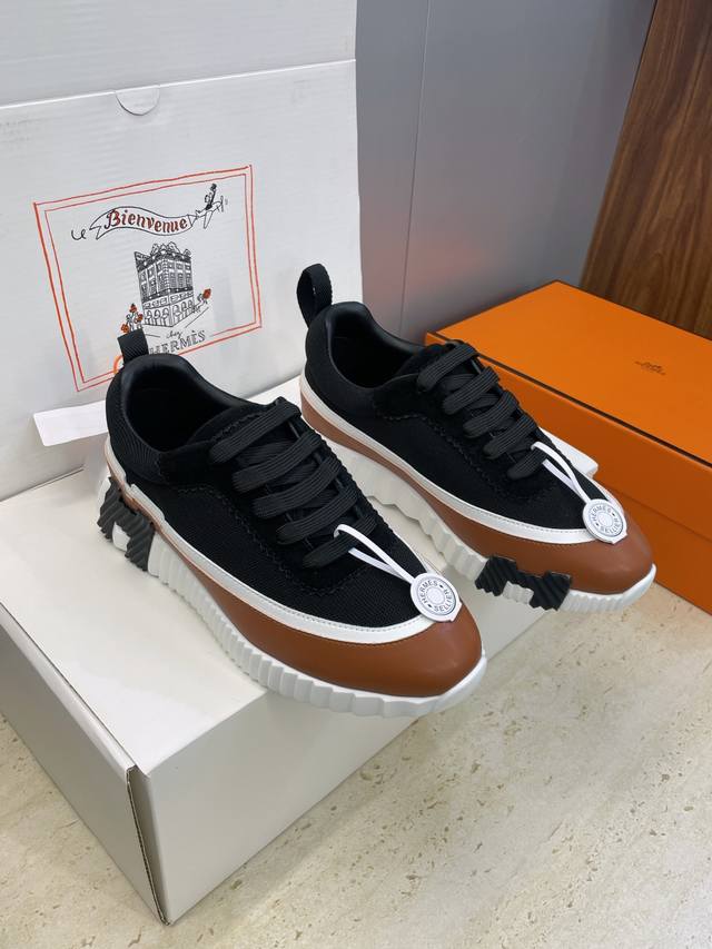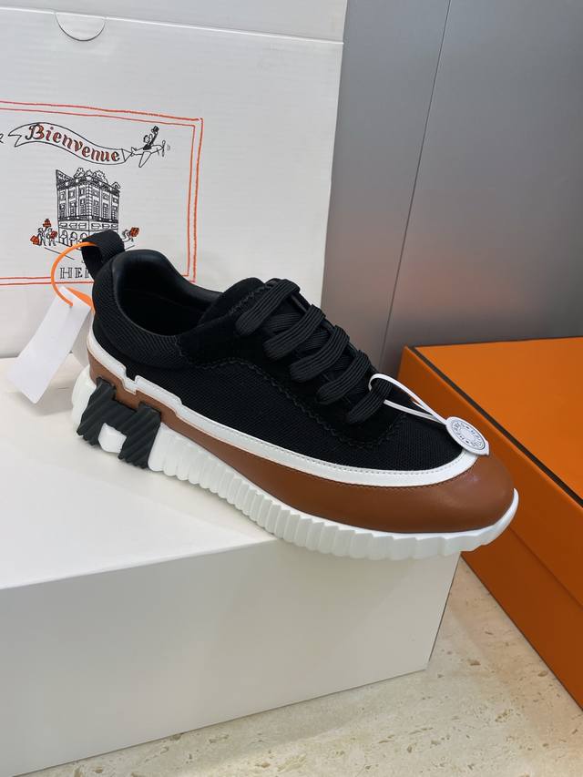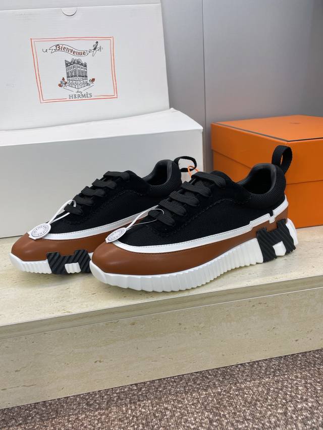 / 工厂P价P 配全套飞机盒 莞货 顶级版 爱马仕 Hermes 2025秋冬经典情侣款 Bouncing 休闲系带百搭运动鞋 H家厚底时尚风格拼色跑鞋 材质:鞋面