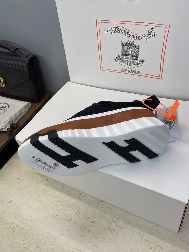 工厂P价P 配全套飞机盒 莞货 顶级版 爱马仕 Hermes 2025秋冬经典情侣款 Bouncing 休闲系带百搭运动鞋 H家厚底时尚风格拼色跑鞋 材质:鞋面进口环保透气网眼布拼接进口羊猄皮 小牛皮+水染羊皮内里+原版开模大底 底厚:2.5Cm Size: 女码35-42 40.41.42定制不退换 男码39-46 39.46定制不退换