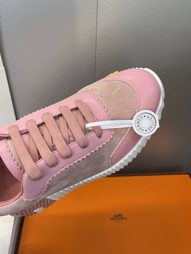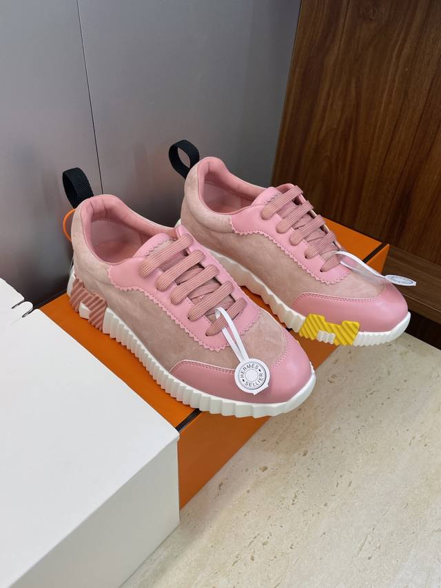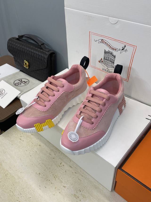 / 工厂P价P 配全套飞机盒 莞货 顶级版 爱马仕 Hermes 2025秋冬经典情侣款 Bouncing 休闲系带百搭运动鞋 H家厚底时尚风格拼色跑鞋 材质:鞋面