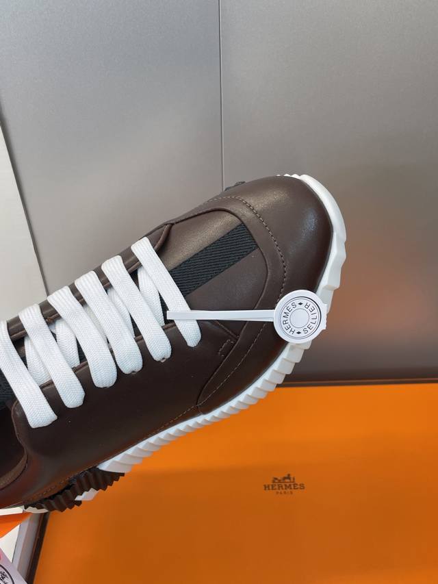 工厂P价P 配全套飞机盒 莞货 顶级版 爱马仕 Hermes 2025秋冬经典情侣款 Bouncing 休闲系带百搭运动鞋 H家厚底时尚风格拼色跑鞋 材质:鞋面