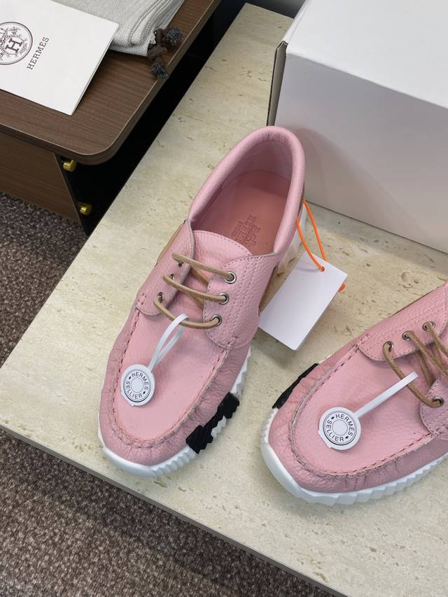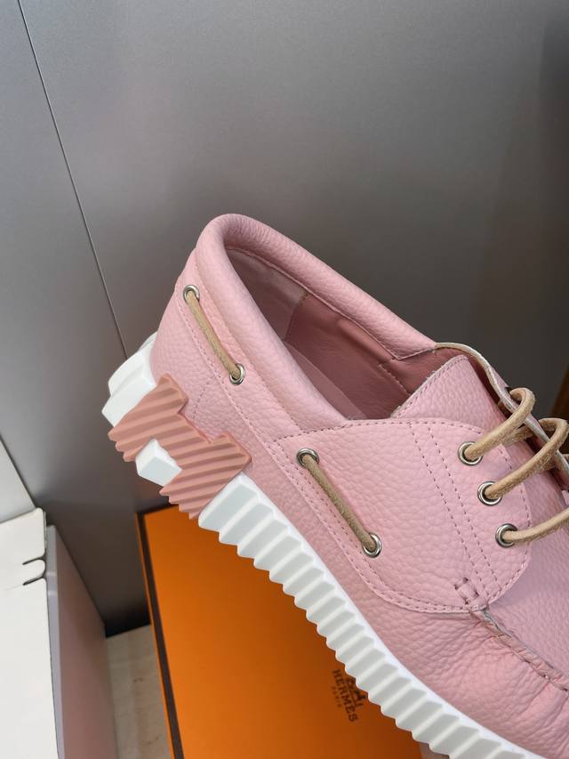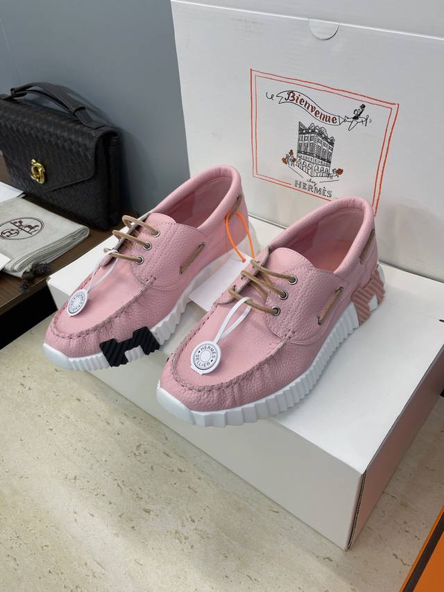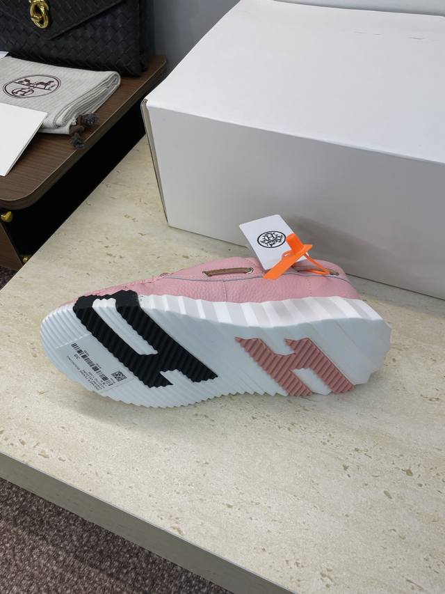 工厂P价P 配全套飞机盒 莞货 顶级版 爱马仕 Hermes 2025秋冬经典情侣款 Bouncing 休闲系带百搭运动鞋 H家厚底时尚风格拼色跑鞋 材质:鞋面
