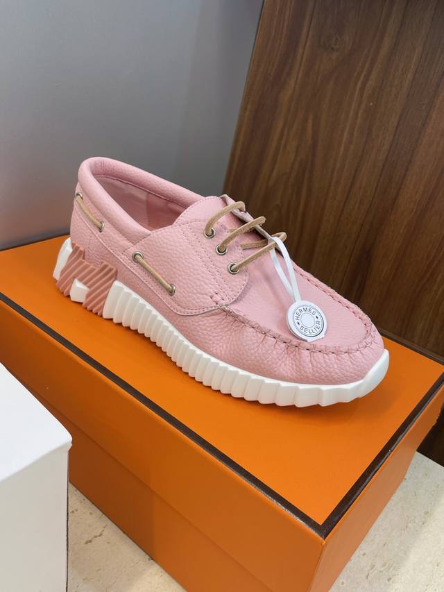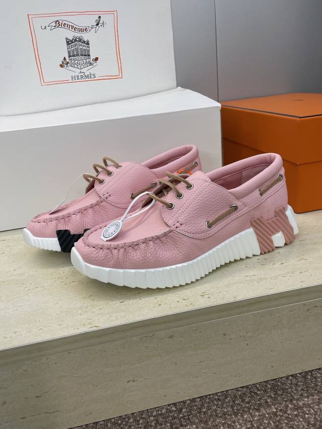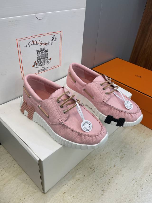 / 工厂P价P 配全套飞机盒 莞货 顶级版 爱马仕 Hermes 2025秋冬经典情侣款 Bouncing 休闲系带百搭运动鞋 H家厚底时尚风格拼色跑鞋 材质:鞋面