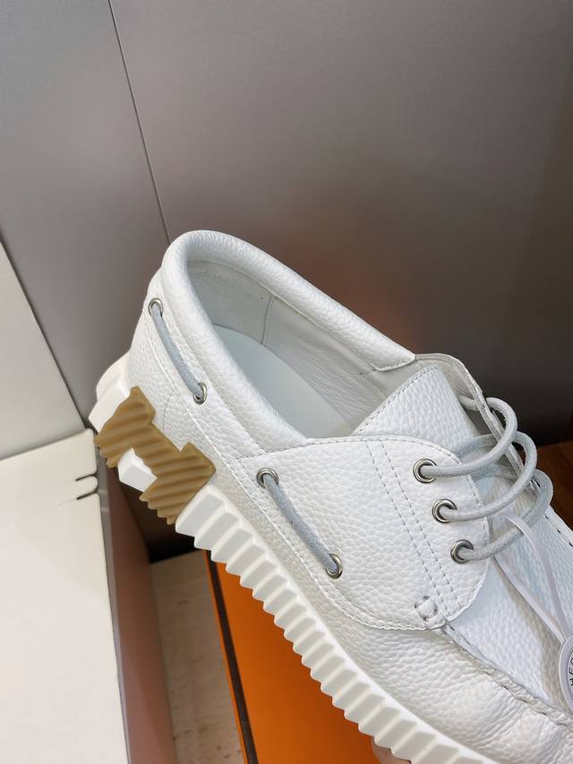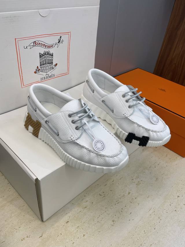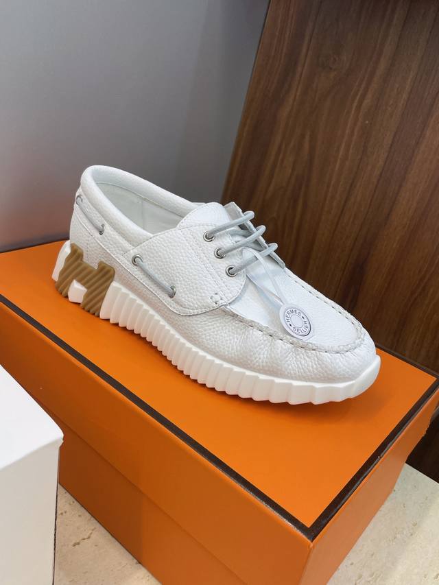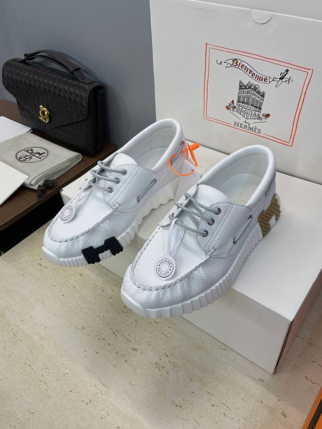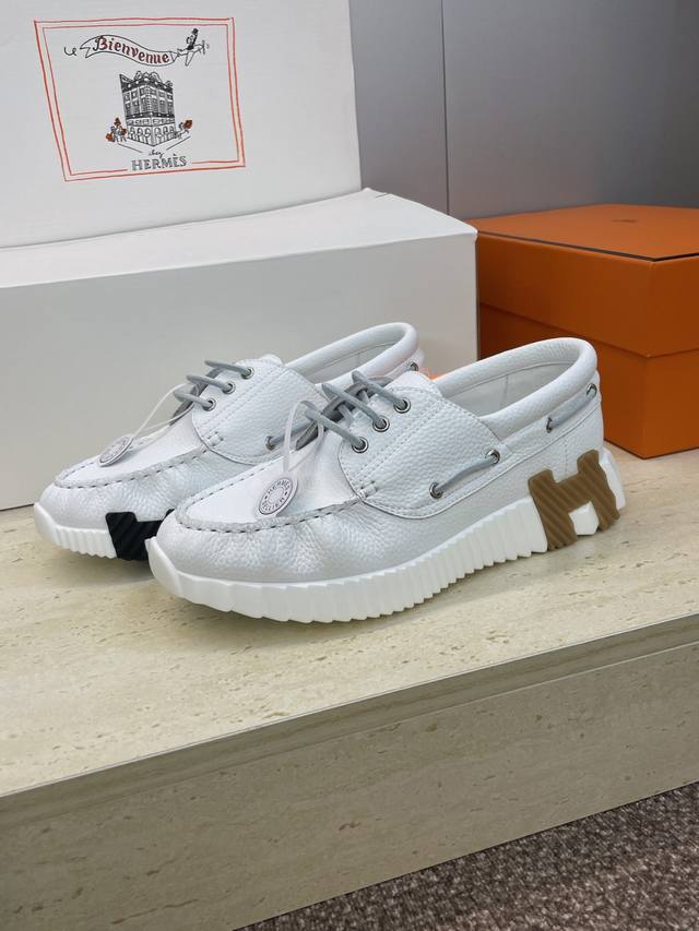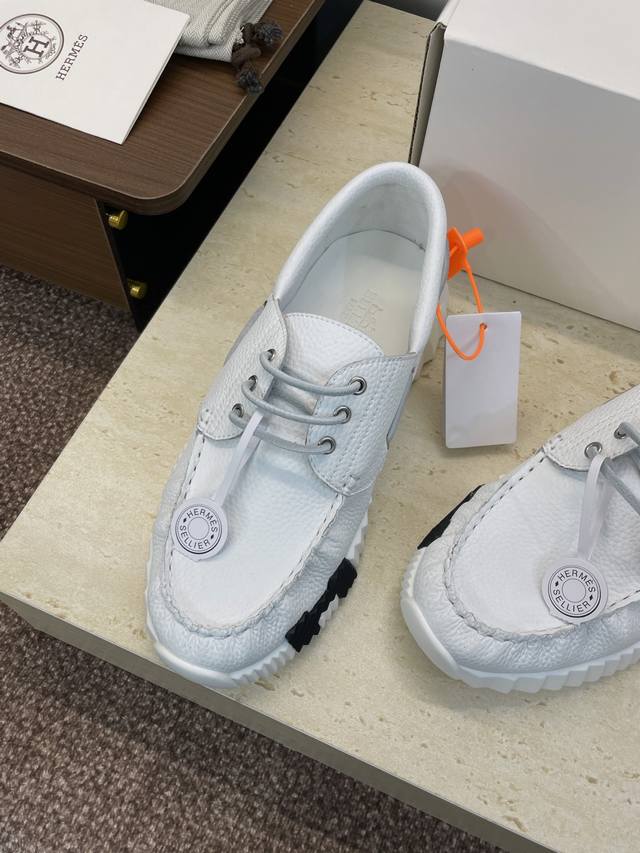 工厂P价P 配全套飞机盒 莞货 顶级版 爱马仕 Hermes 2025秋冬经典情侣款 Bouncing 休闲系带百搭运动鞋 H家厚底时尚风格拼色跑鞋 材质:鞋面