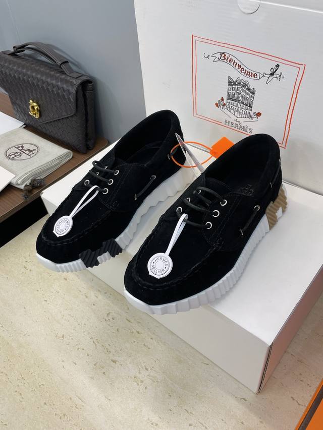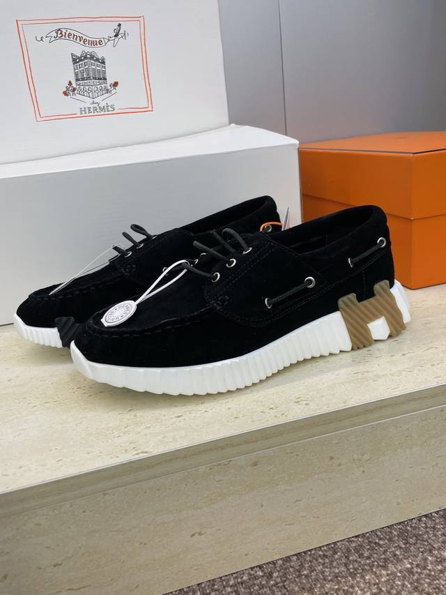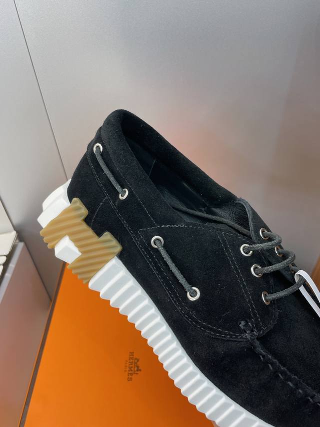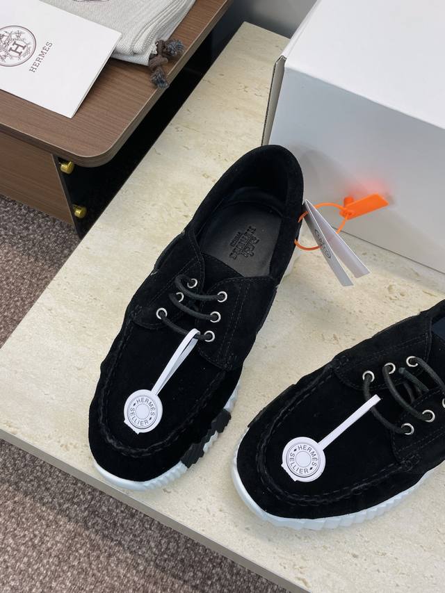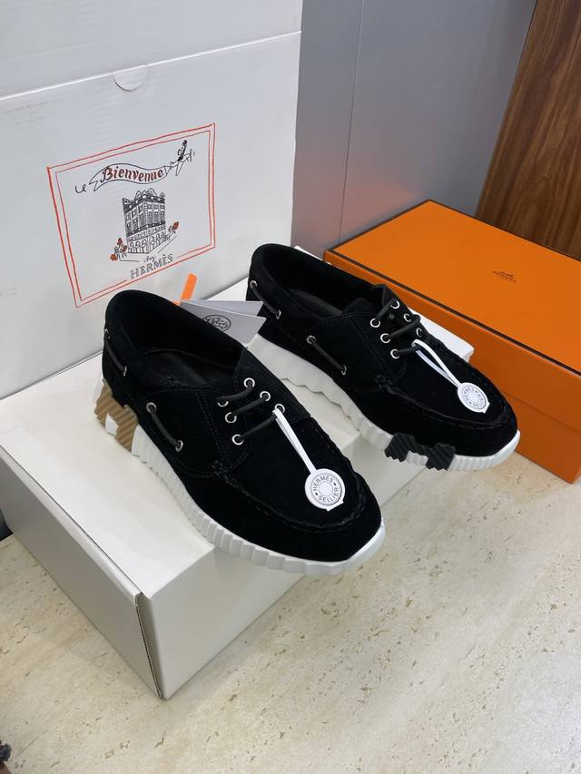 工厂P价P 配全套飞机盒 莞货 顶级版 爱马仕 Hermes 2025秋冬经典情侣款 Bouncing 休闲系带百搭运动鞋 H家厚底时尚风格拼色跑鞋 材质:鞋面