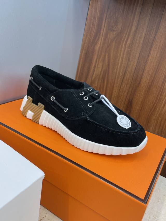 / 工厂P价P 配全套飞机盒 莞货 顶级版 爱马仕 Hermes 2025秋冬经典情侣款 Bouncing 休闲系带百搭运动鞋 H家厚底时尚风格拼色跑鞋 材质:鞋面