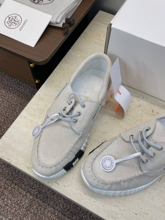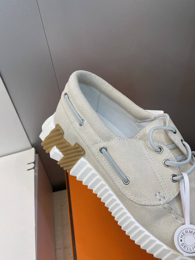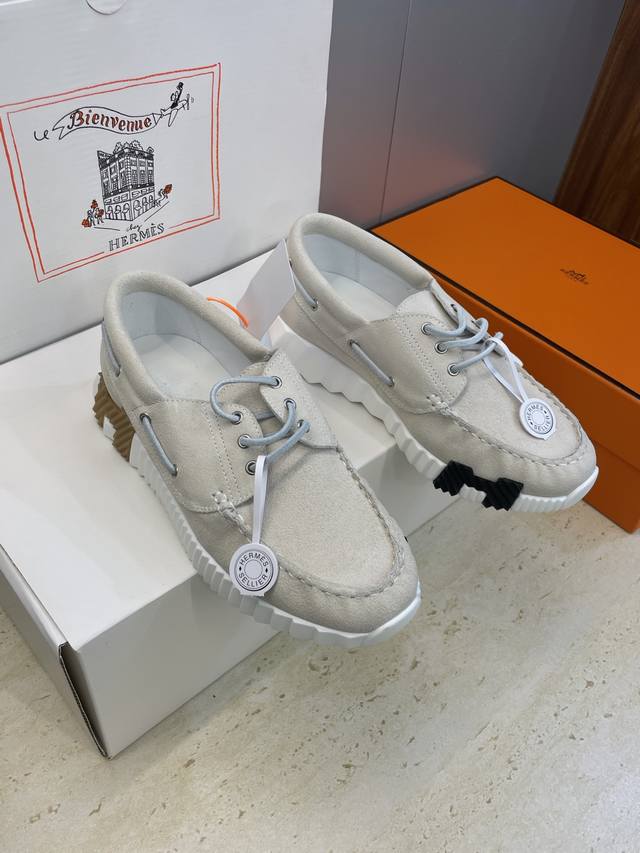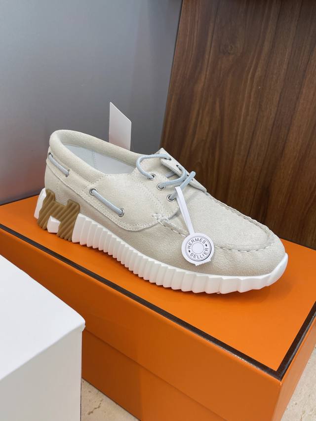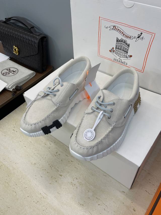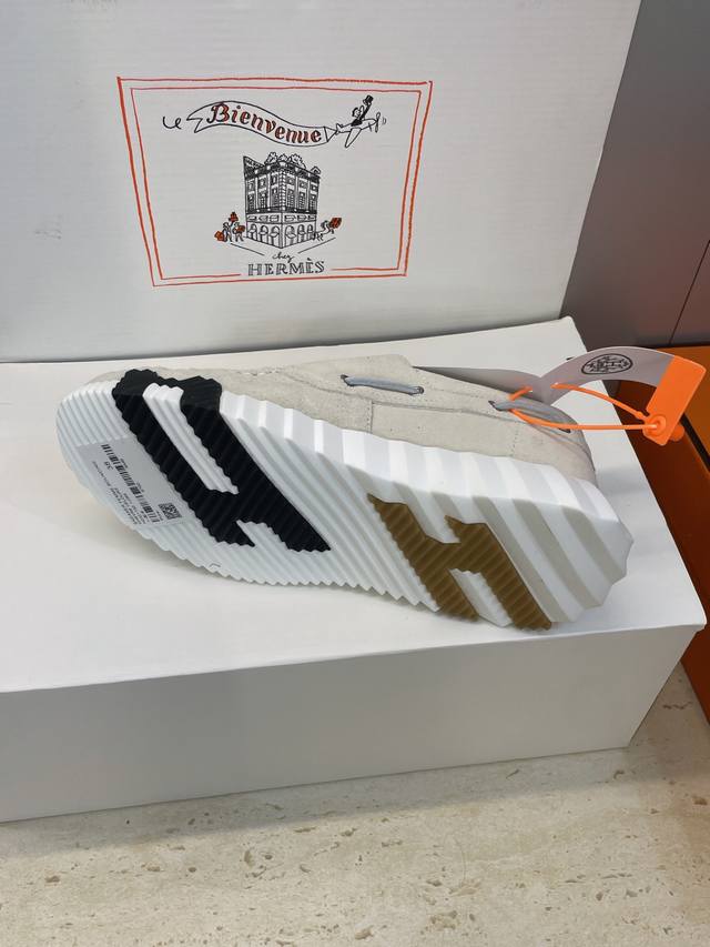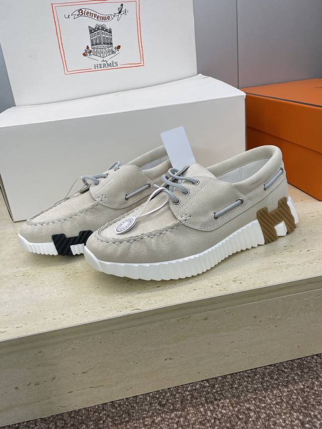 工厂P价P 配全套飞机盒 莞货 顶级版 爱马仕 Hermes 2025秋冬经典情侣款 Bouncing 休闲系带百搭运动鞋 H家厚底时尚风格拼色跑鞋 材质:鞋面
