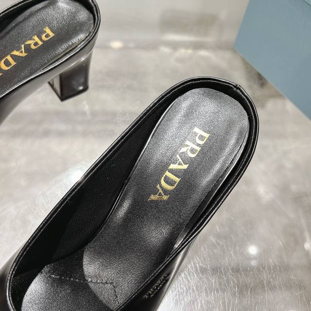 工厂P价P ,25年新款上市走秀明星新品时尚潮流 Prada 普拉达 方头高跟方跟粗跟凉鞋后空单鞋。鞋面采用进口牛漆皮,开边珠、内里垫脚为进口羊皮,意大利注塑真皮大底。3个跟高:平跟、5.5Cm、 8.5Cm。Size:35-40 41可定做,不退换