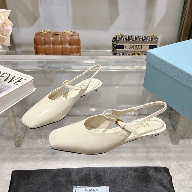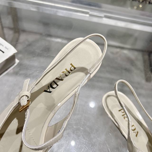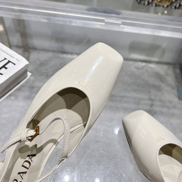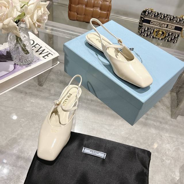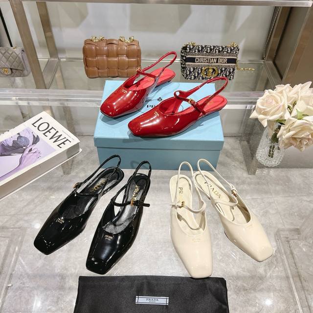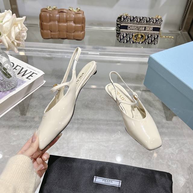 / 工厂P价P ,25年新款上市走秀明星新品时尚潮流 Prada 普拉达 方头高跟方跟粗跟凉鞋后空单鞋。鞋面采用进口牛漆皮,开边珠、内里垫脚为进口羊皮,意大利注塑真