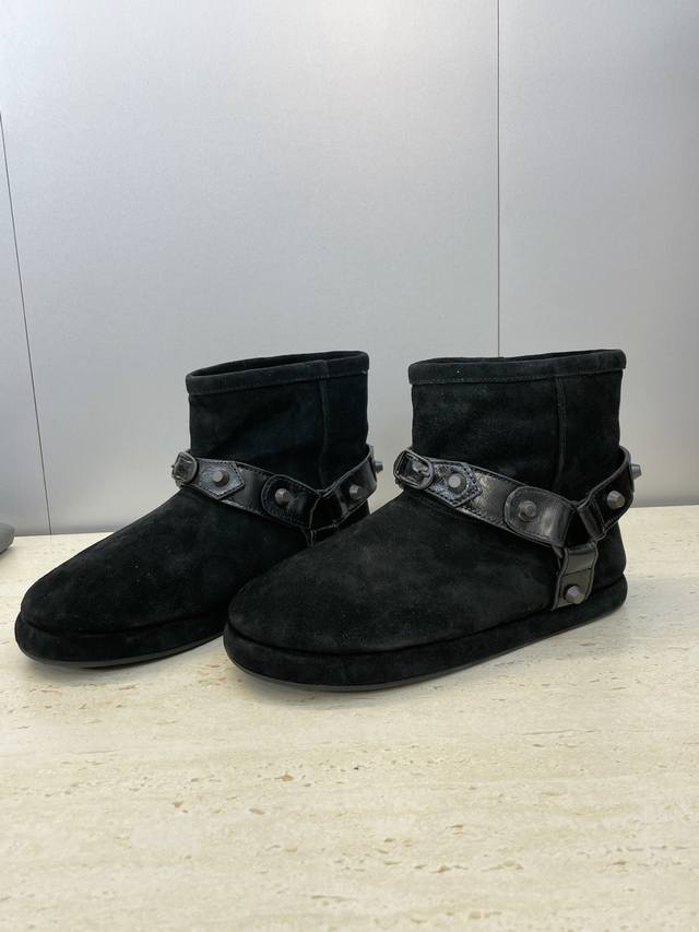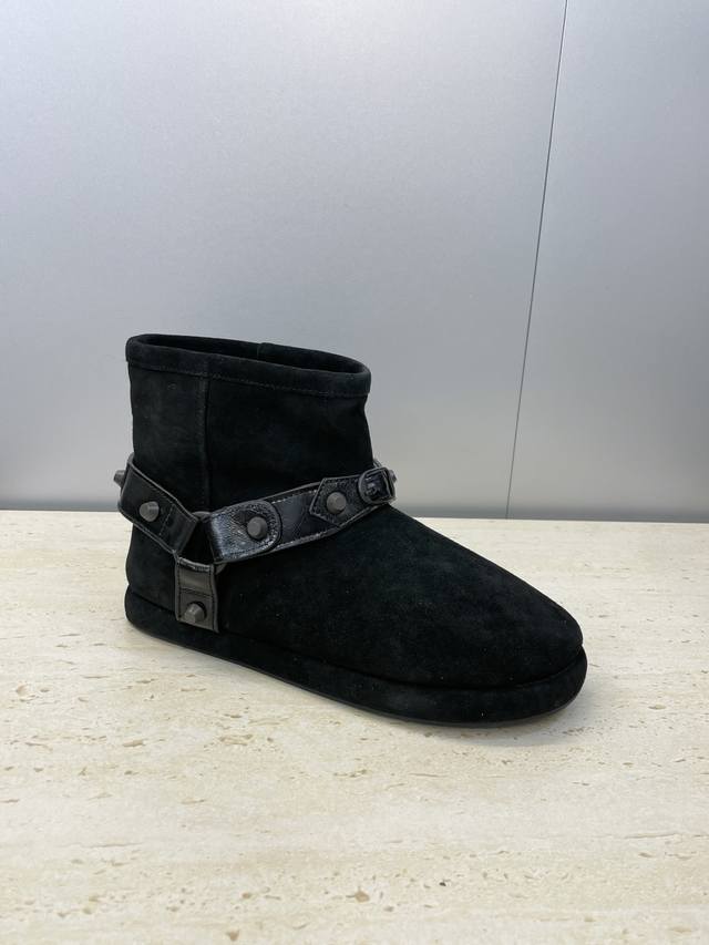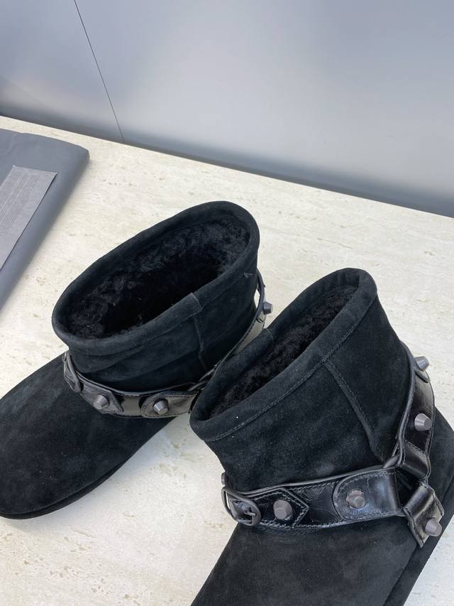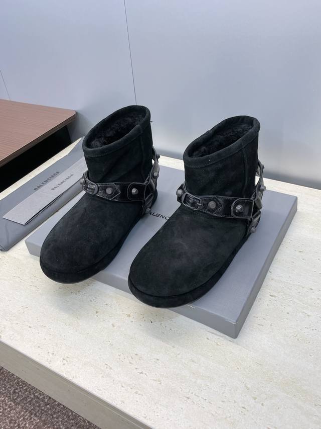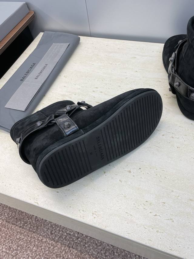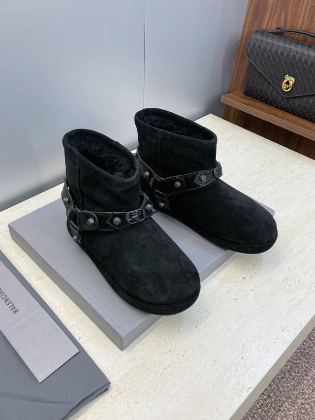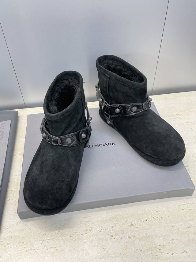 / 工厂P价P Balenciaga 2025秋冬新款朋克风格防寒保暖羊皮毛一体女靴 巴黎世家明星同款字母Logo厚底圆头铆钉皮带扣雪地靴 材质:鞋面进口牛猄皮+1