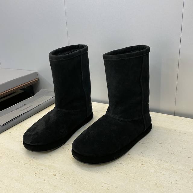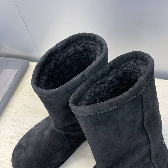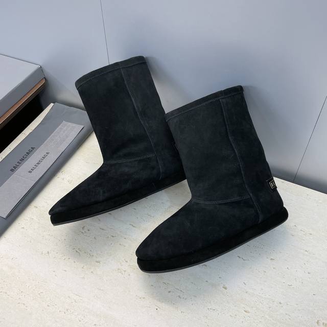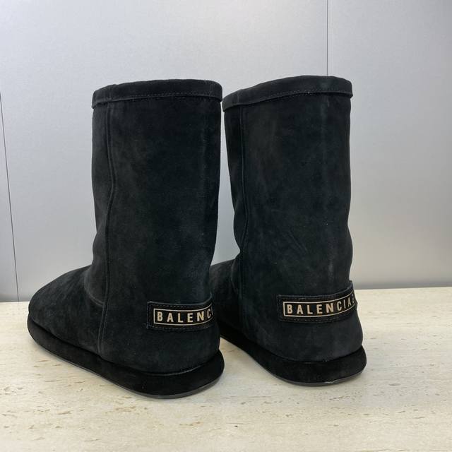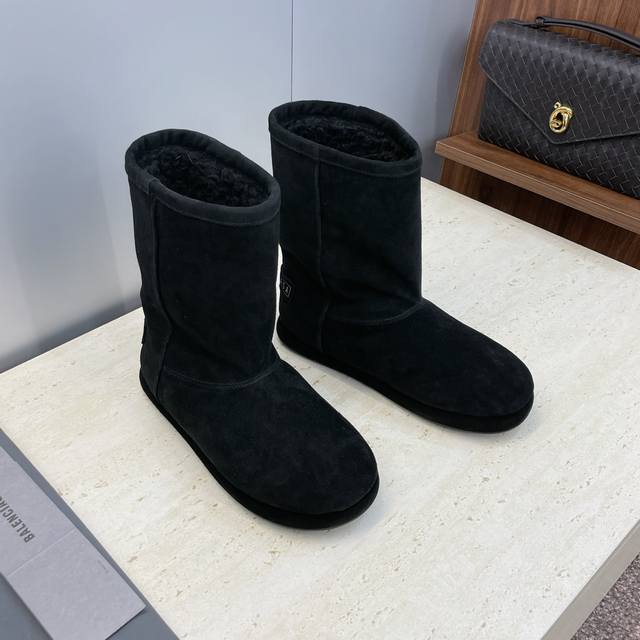 / 工厂P价P Balenciaga 2025秋冬新款防寒保暖羊皮毛一体女靴 巴黎世家明星同款字母Logo厚底圆头一脚蹬雪地靴 材质:鞋面进口牛猄皮+100%羊羔毛