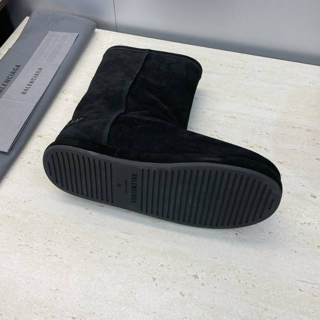 工厂P价P Balenciaga 2025秋冬新款防寒保暖羊皮毛一体女靴 巴黎世家明星同款字母Logo厚底圆头一脚蹬雪地靴 材质:鞋面进口牛猄皮+100%羊羔毛内里+原版开模大底 Size:35-41 40.41定制不退换