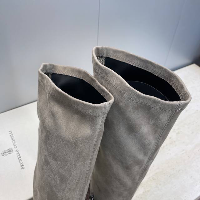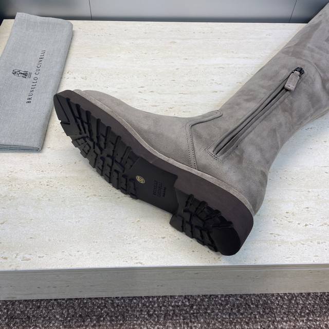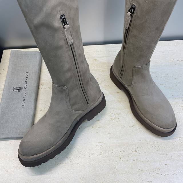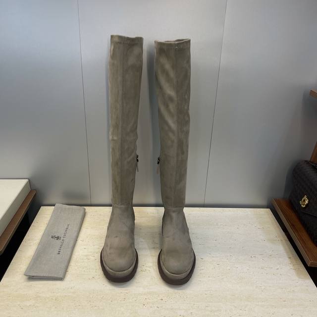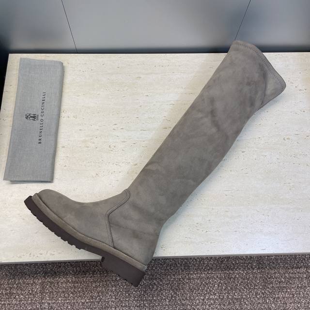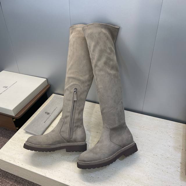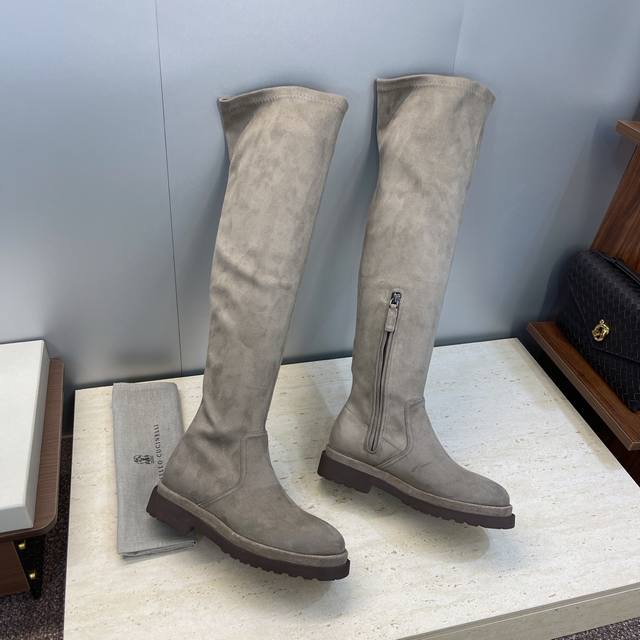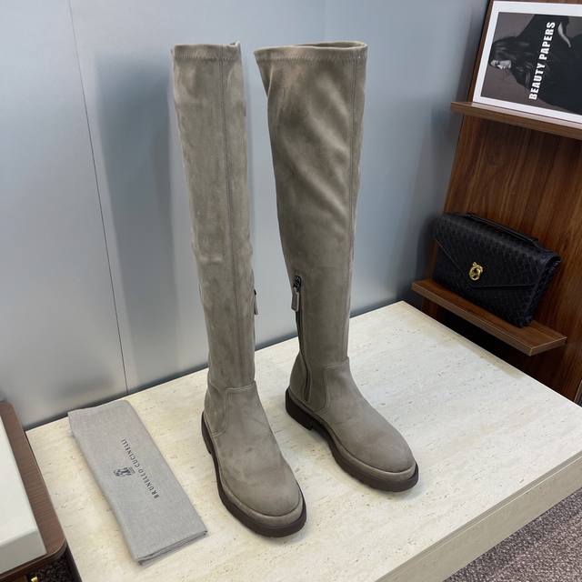 / 工厂P价P Brunello Cucineli 布鲁内诺库奇内利2025秋冬新款游牧风格保暖高筒女长靴 Bc 厚底圆头侧拉链一脚蹬过膝弹力机车骑士靴 材质:鞋面