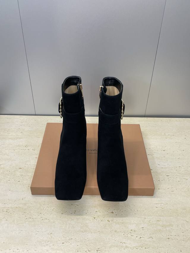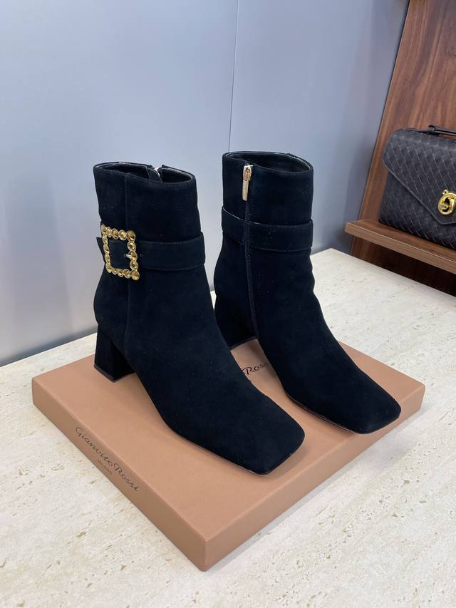 工厂P价P Gianvito Rossi 塞乔.罗茜2025秋冬新款及裸机车粗跟女靴 Gr字母Logo五金扣高跟方头侧拉链机车骑士短靴 材质:鞋面进口小牛皮 进