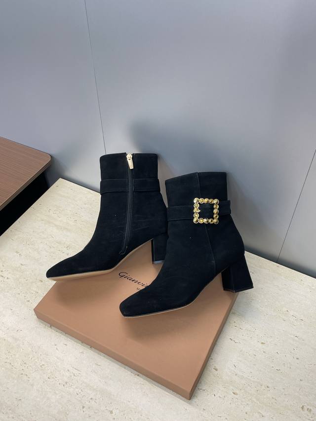 工厂P价P Gianvito Rossi 塞乔.罗茜2025秋冬新款及裸机车粗跟女靴 Gr字母Logo五金扣高跟方头侧拉链机车骑士短靴 材质:鞋面进口小牛皮 进口羊猄皮+水染羊皮内里+意大利真皮大底 跟高:6.5Cm Size:34-42 34.40.41.42定做不退换