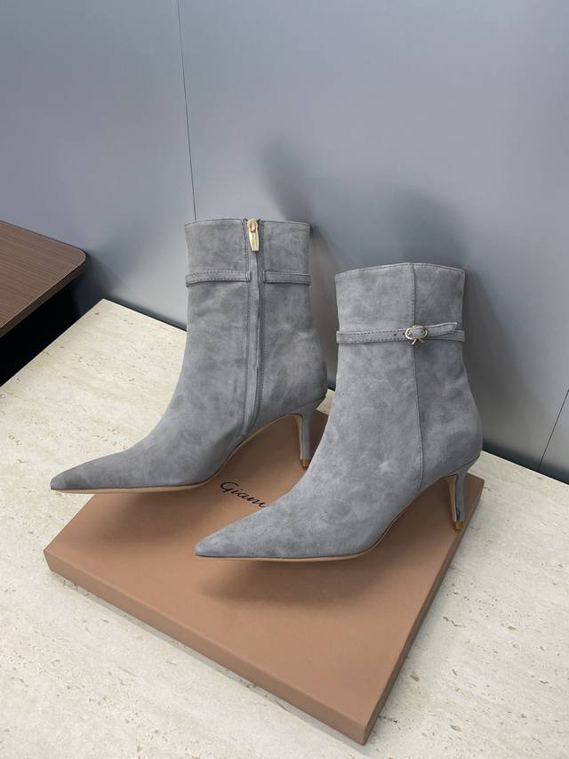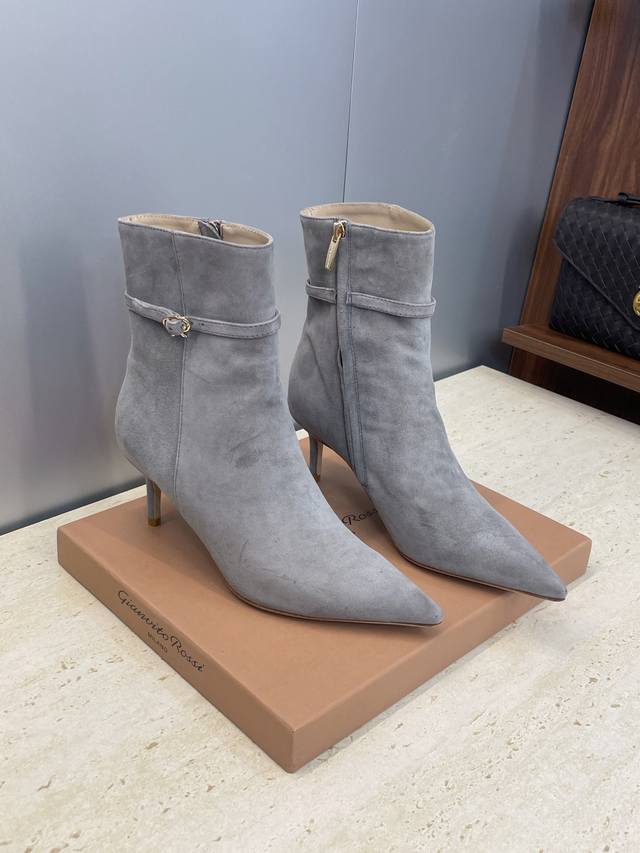 工厂P价P Gianvito Rossi 塞乔.罗茜2025秋冬新款及裸马丁女靴 Gr字母Logo五金扣高跟尖头侧拉链机车骑士短靴 材质:鞋面进口小牛皮 进口羊猄皮+水染羊皮内里+意大利真皮大底 跟高:6.5Cm Size:34-42 34.40.41.42定做不退换