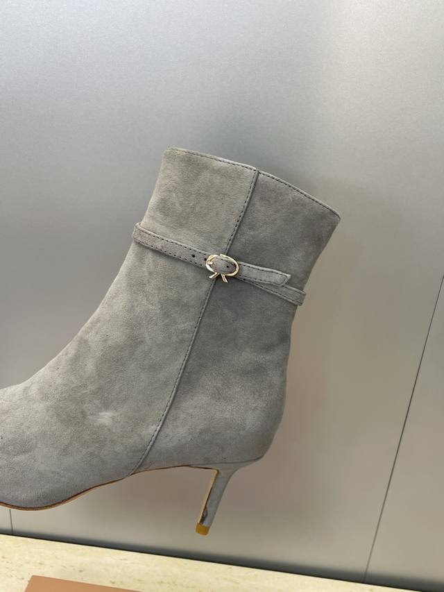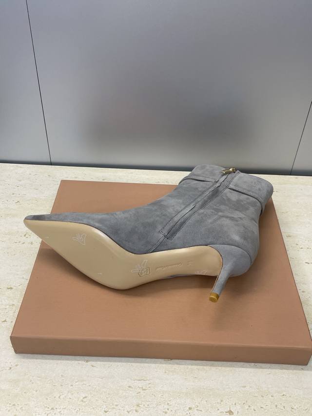 / 工厂P价P Gianvito Rossi 塞乔.罗茜2025秋冬新款及裸马丁女靴 Gr字母Logo五金扣高跟尖头侧拉链机车骑士短靴 材质:鞋面进口小牛皮 进口羊