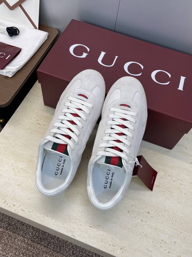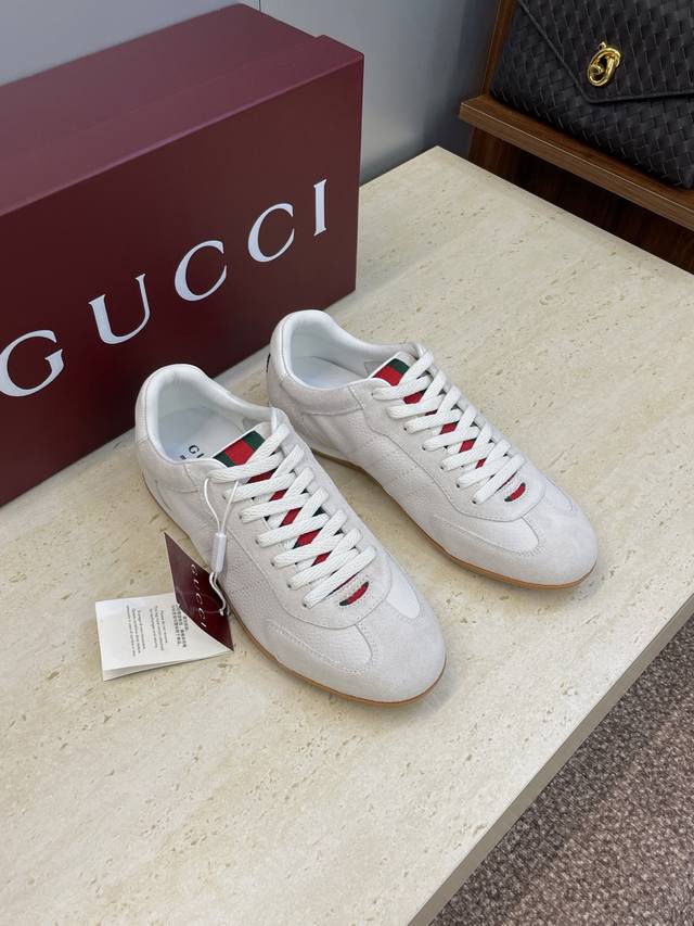 / 工厂P价P Gucci 古驰 2025秋冬系列 Shift 情侣新款系带休闲运动鞋 G家字母Logo拼色平底圆头复古擦色阿甘徳训滑板鞋 市面顶级版本 材质:鞋面