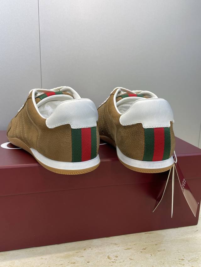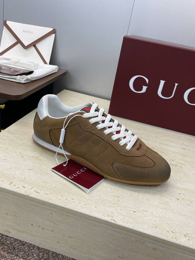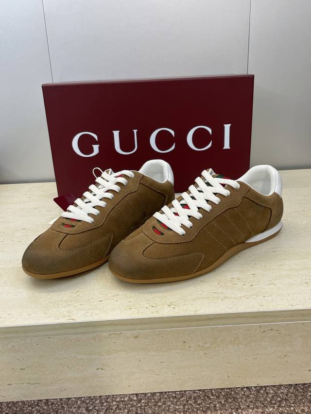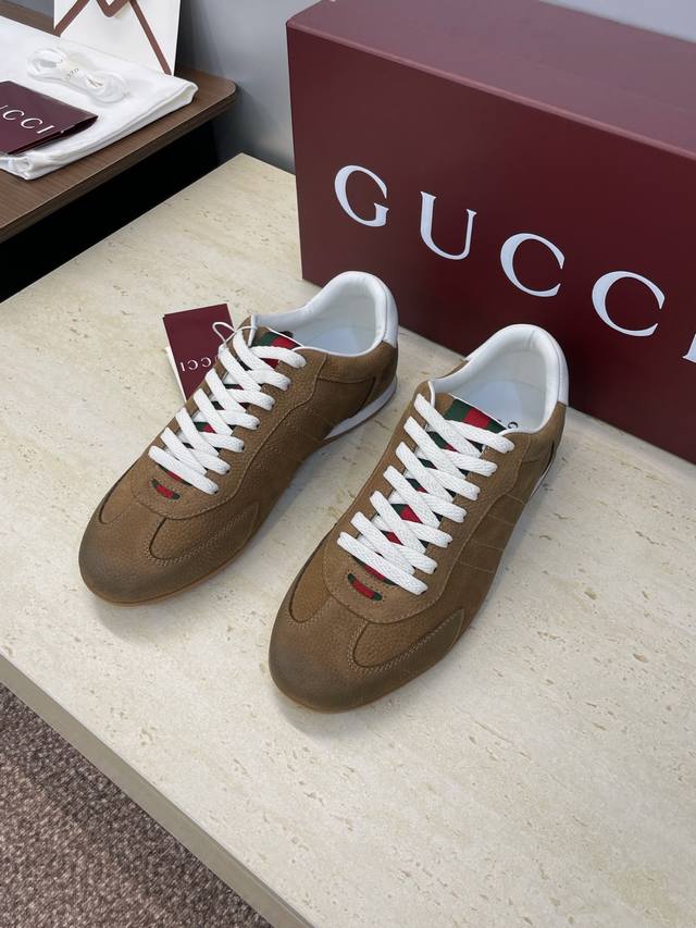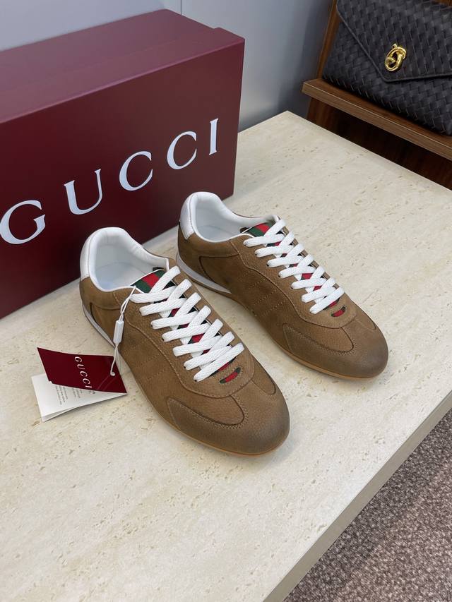 工厂P价P Gucci 古驰 2025秋冬系列 Shift 情侣新款系带休闲运动鞋 G家字母Logo拼色平底圆头复古擦色阿甘徳训滑板鞋 市面顶级版本 材质:鞋面进口小牛皮 进口羊猄皮 进口环保透气老花布+水染牛皮内里+原版开模双色Tpu大底 Size:女码34-41 34.41定制不退换 男码39-46 45.46定做不退换