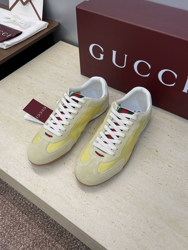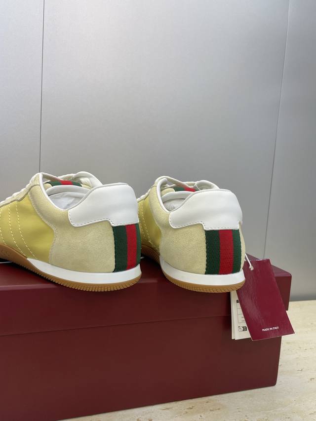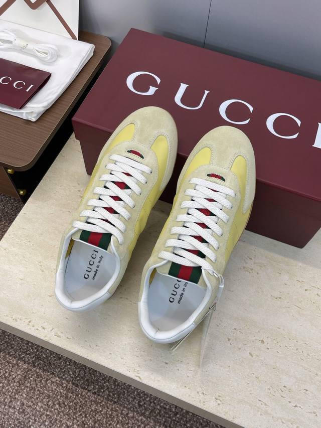 工厂P价P Gucci 古驰 2025秋冬系列 Shift 情侣新款系带休闲运动鞋 G家字母Logo拼色平底圆头复古擦色阿甘徳训滑板鞋 市面顶级版本 材质:鞋面进口小牛皮 进口羊猄皮 进口环保透气老花布+水染牛皮内里+原版开模双色Tpu大底 Size:女码34-41 34.41定制不退换 男码39-46 45.46定做不退换