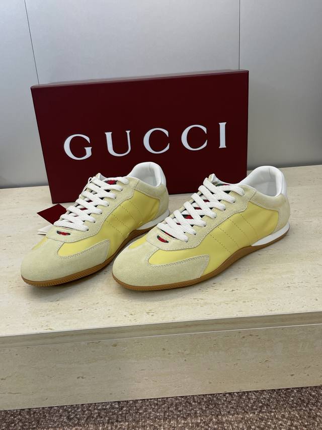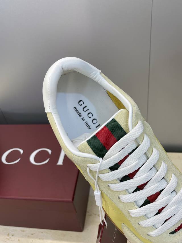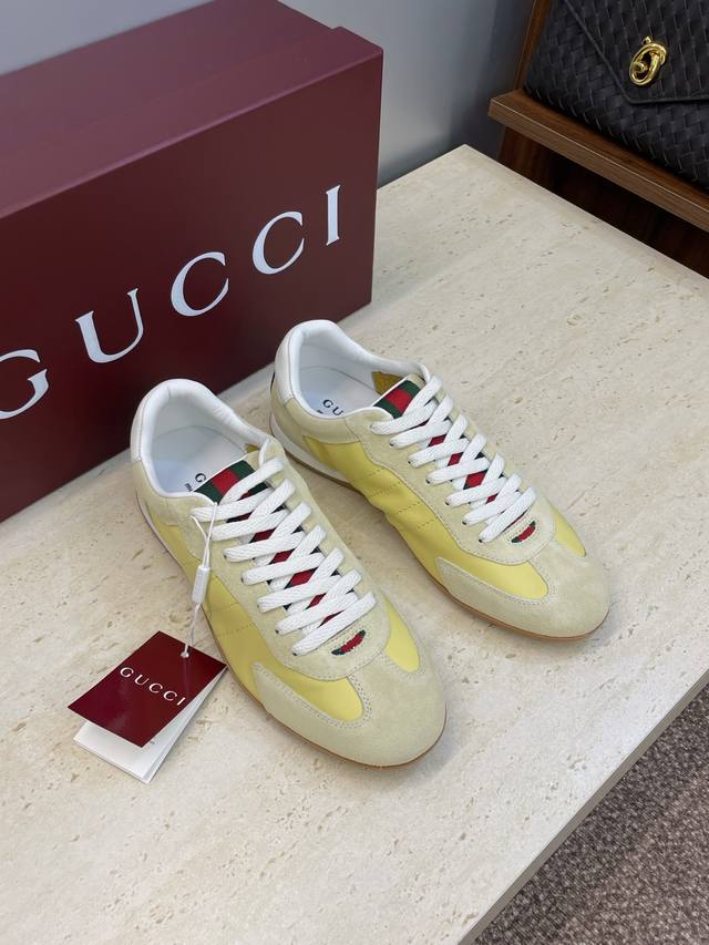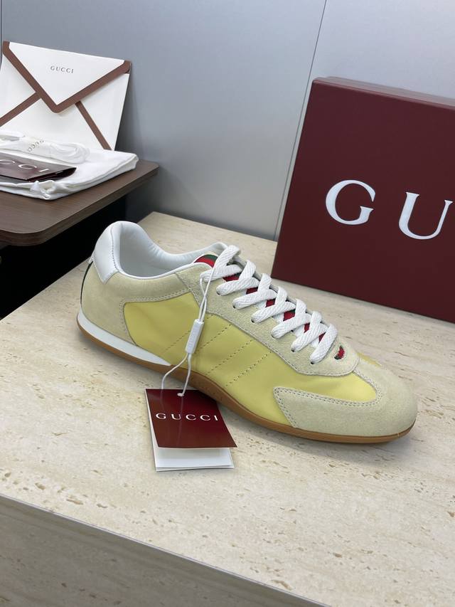 / 工厂P价P Gucci 古驰 2025秋冬系列 Shift 情侣新款系带休闲运动鞋 G家字母Logo拼色平底圆头复古擦色阿甘徳训滑板鞋 市面顶级版本 材质:鞋面