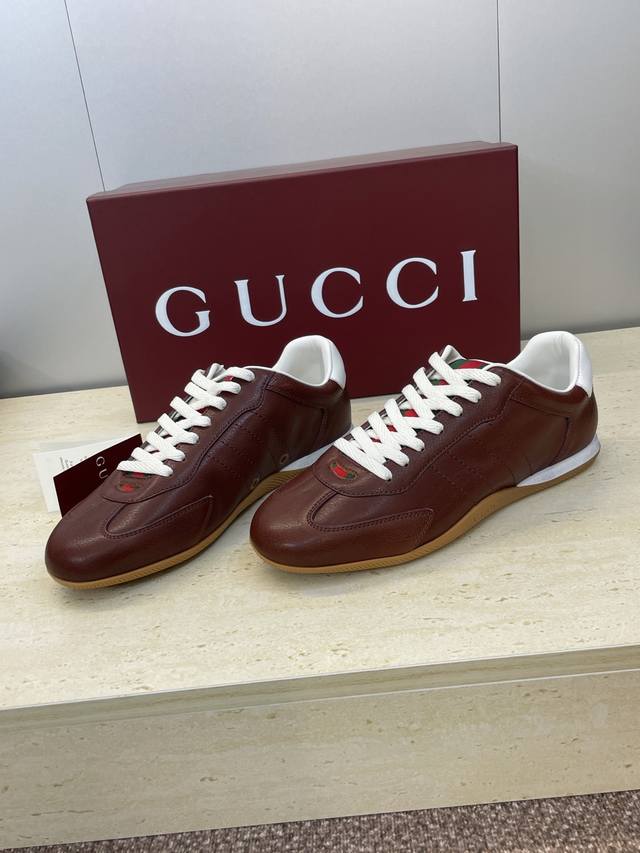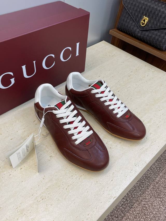 / 工厂P价P Gucci 古驰 2025秋冬系列 Shift 情侣新款系带休闲运动鞋 G家字母Logo拼色平底圆头复古擦色阿甘徳训滑板鞋 市面顶级版本 材质:鞋面