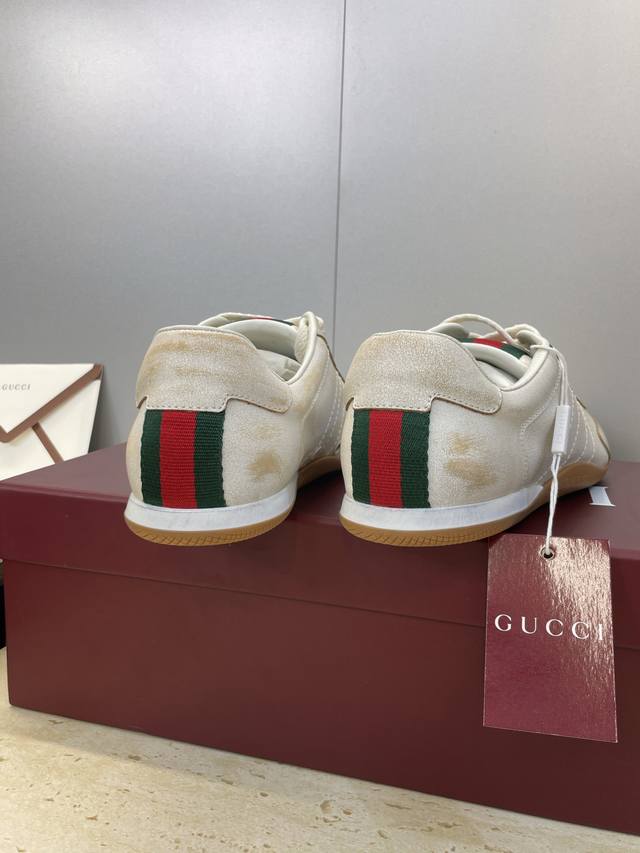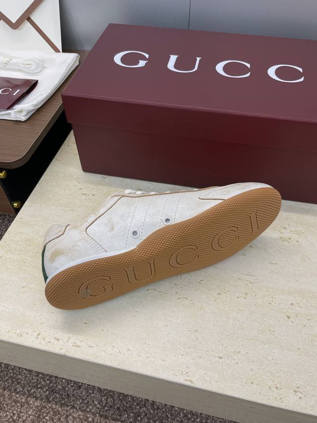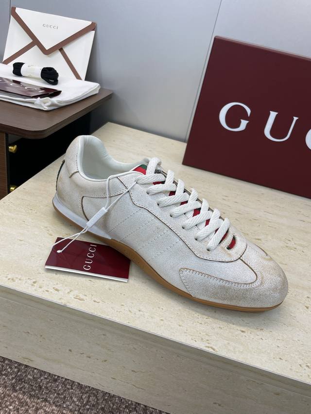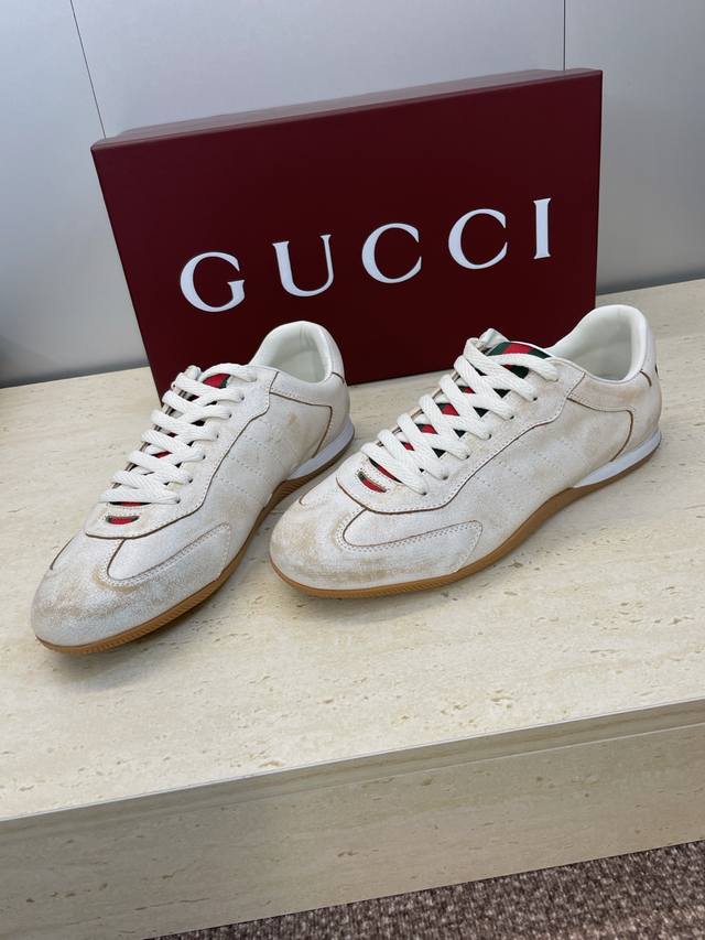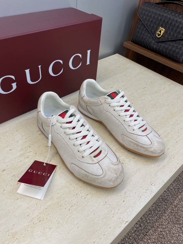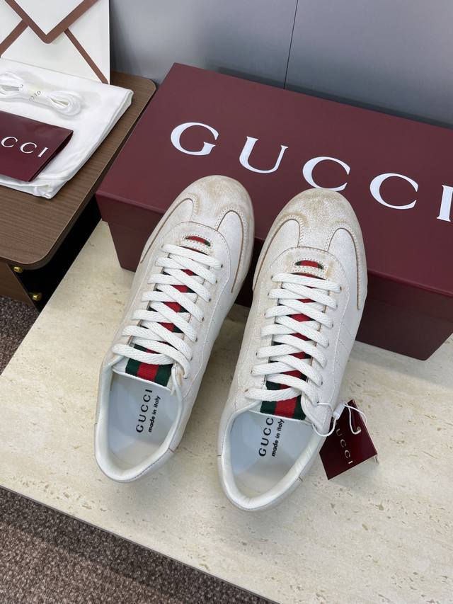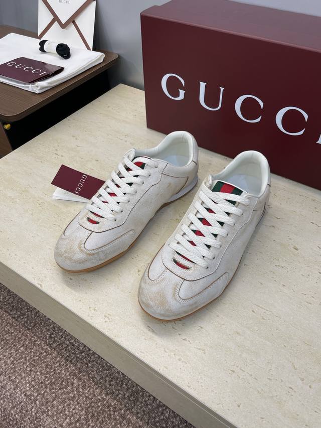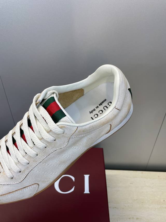 / 工厂P价P Gucci 古驰 2025秋冬系列 Shift 情侣新款系带休闲运动鞋 G家字母Logo拼色平底圆头复古擦色阿甘徳训滑板鞋 市面顶级版本 材质:鞋面