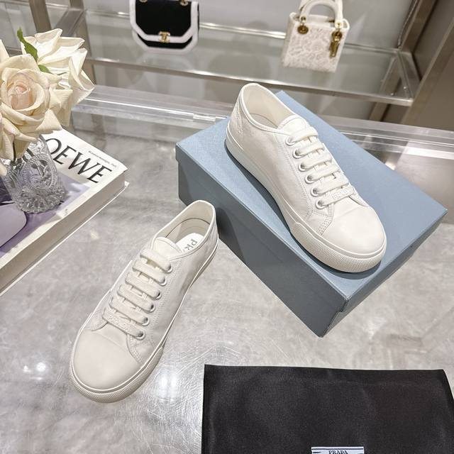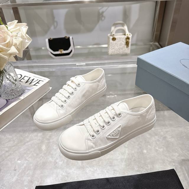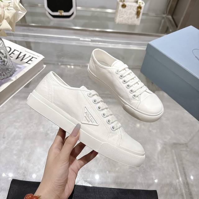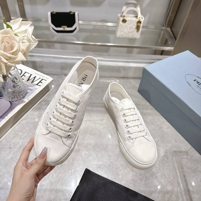 / 工厂P价P Prad* 普拉达25Ss圆头帆布鞋 科技帆布最新黑科技 相隔几年Prada又给我们带来好看的饼干鞋了 时髦精绝对不能错过的必入款,没有任何繁杂装饰