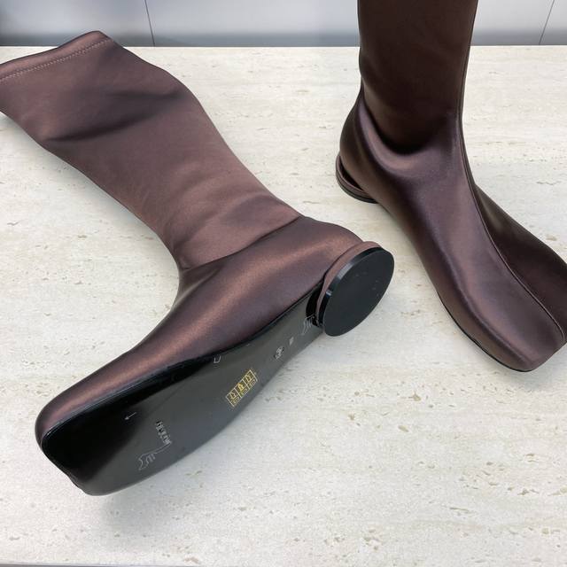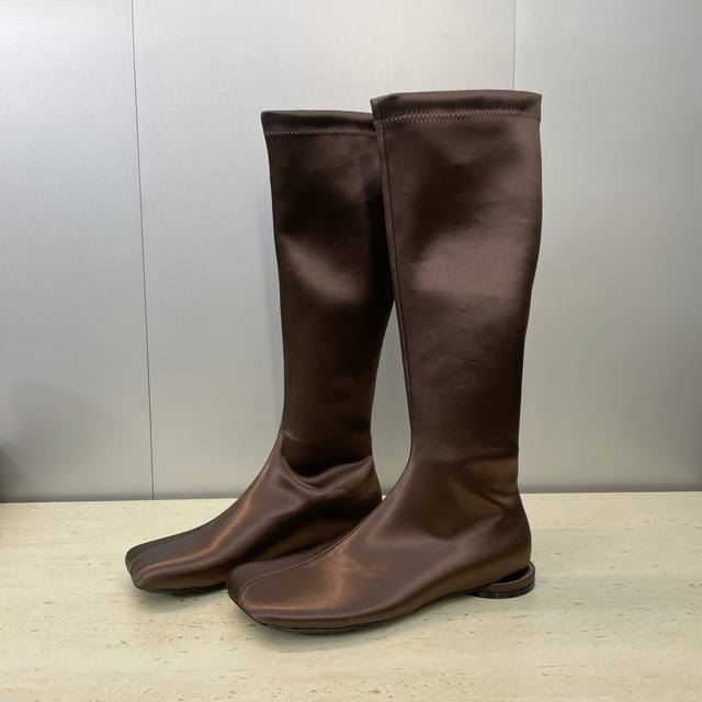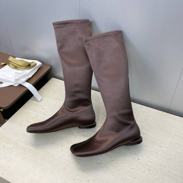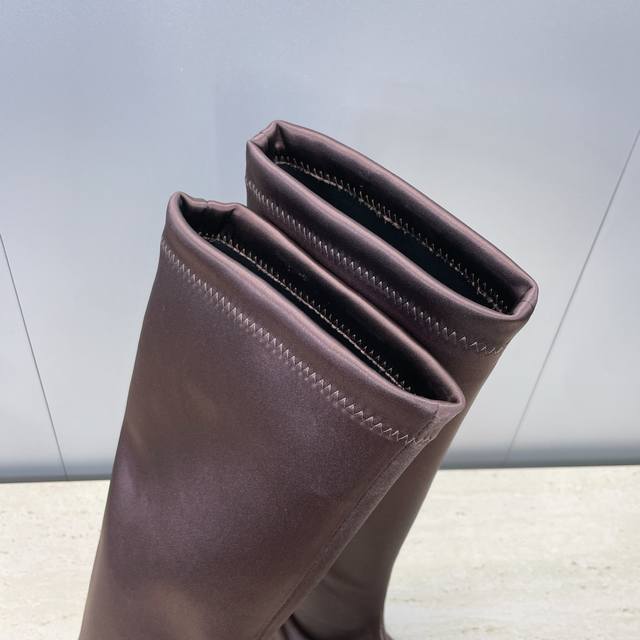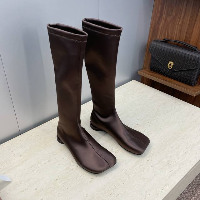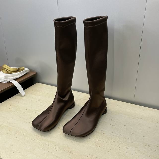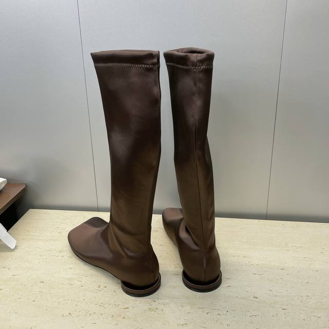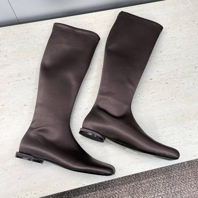 / 工厂P价P The Row 2025秋冬新款及膝弹力女长靴 低跟一脚蹬机车骑士军靴 材质:鞋面进口环保弹力超纤 弹力真丝+水染羊皮垫脚+意大利真皮大底 Size