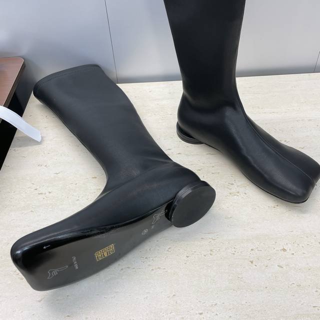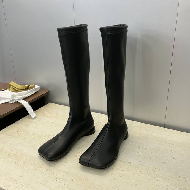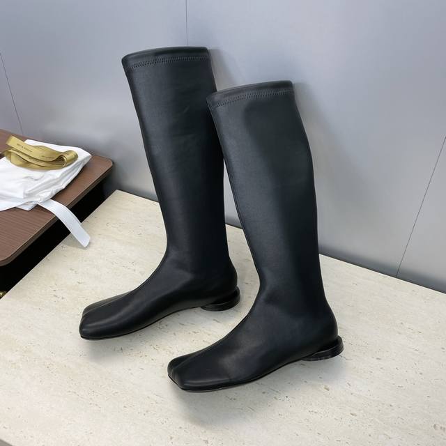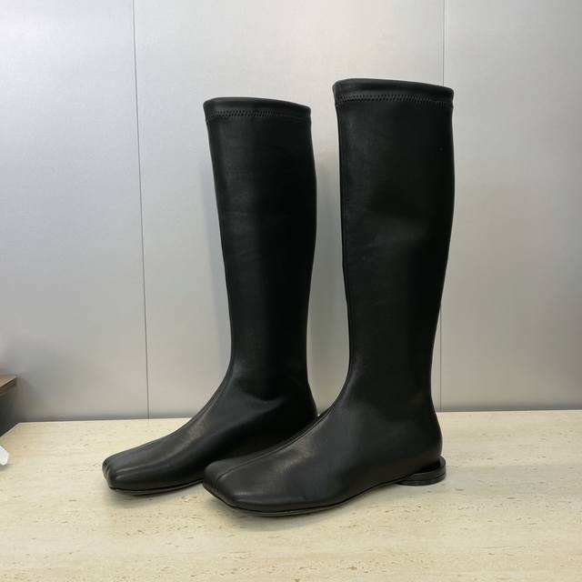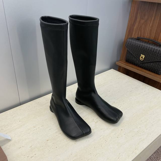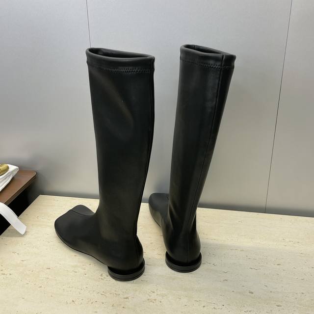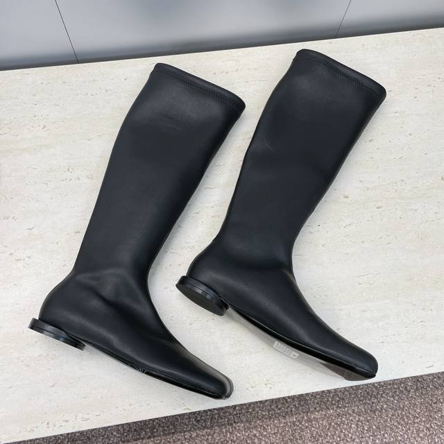/ 工厂P价P The Row 2025秋冬新款及膝弹力女长靴 低跟一脚蹬机车骑士军靴 材质:鞋面进口环保弹力超纤 弹力真丝+水染羊皮垫脚+意大利真皮大底 Size