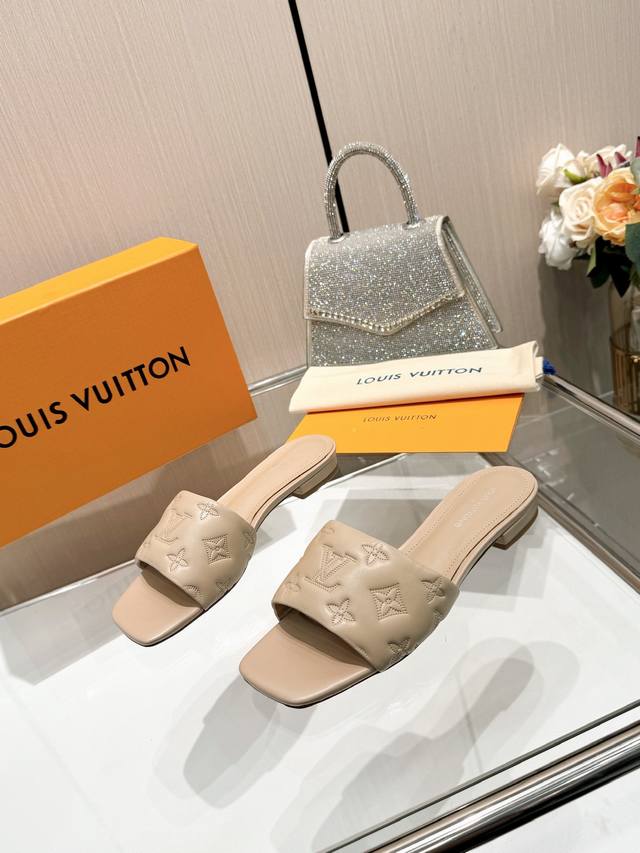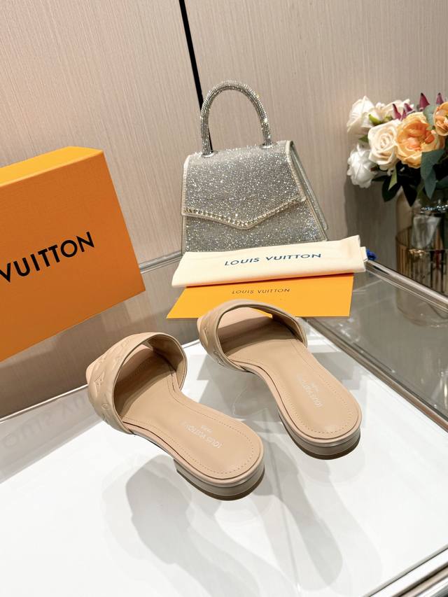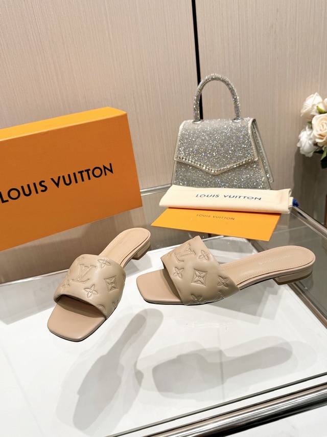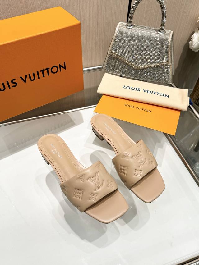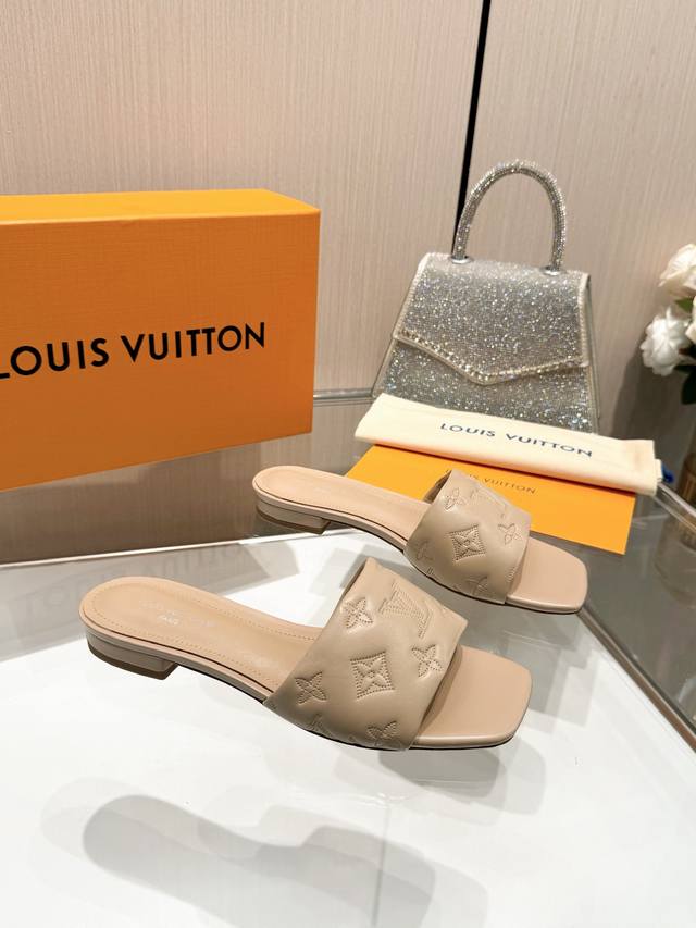工厂P批P: 、 代购级 、Louis Vuitton 款官网系列拖鞋、完美楦型、Lv最新压花电绣纹工艺、更显优雅气质、上脚舒适好看、时尚百搭、新原版倒模楦型,极致1:1形体,做工精致、进口高端面料呈现出精致质感! 面料:进口小羊皮、内里优质柔软羊皮里、 垫脚:进口山羊皮、 意大利真皮大底 1.5面皮包跟 码数:34-41 34.41定制不退不换
