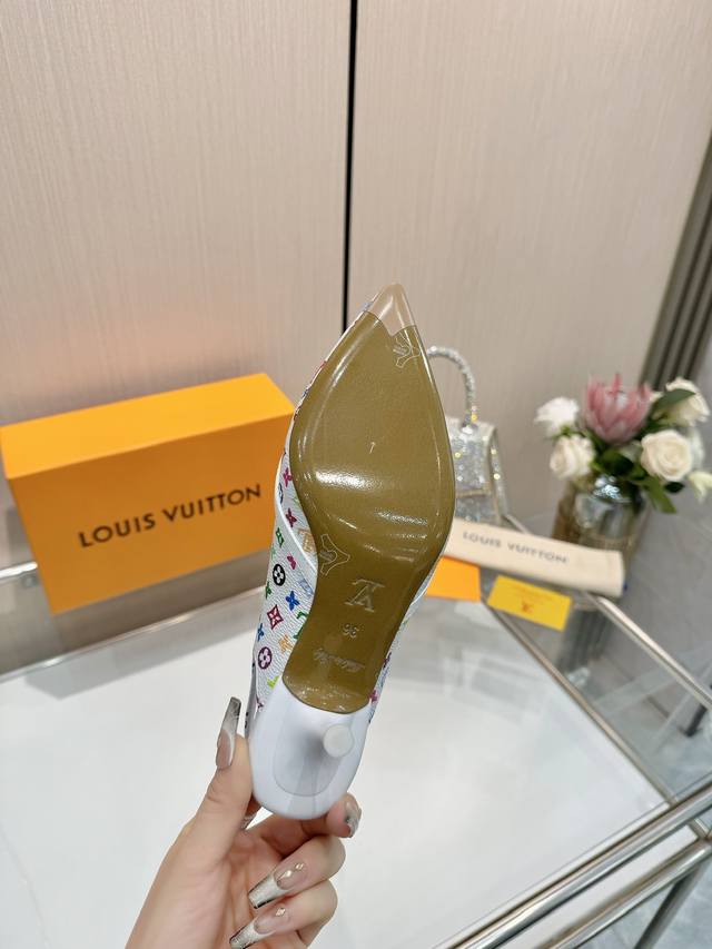 工厂P批P: 、 代购级 、Louis Vuitton 2025官网早春系列!完美楦型、 尖头新品、官网同步更新 小尖头搭配镂空皮条小方扣可调节松紧, Lv五金 “Logo”饰以点缀,细节感拉满、效果视觉盛宴难以掩饰Lv的优雅气质刚刚好、上脚舒适好穿、女人味十足。 新原版倒模楦型,极致1:1形体,做工精致、进口高端面料呈现出精致质感! 面料:进口小羊皮、牛漆皮 老花 牛仔布 内里优质柔软羊皮里、 垫脚:进口山羊皮、 意大利真皮大底 5.5烤漆跟 码数:34-41 34.40、41、定制不退不换