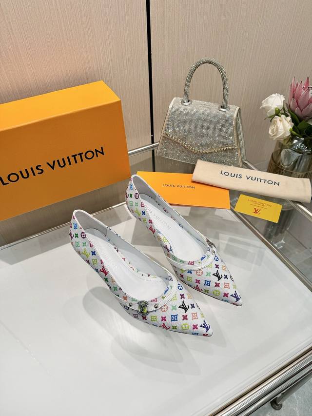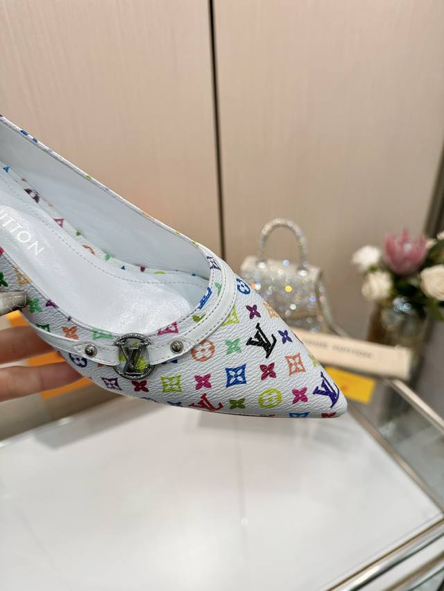 工厂P批P: 、 代购级 、Louis Vuitton 2025官网早春系列!完美楦型、 尖头新品、官网同步更新 小尖头搭配镂空皮条小方扣可调节松紧, Lv五金 “Logo”饰以点缀,细节感拉满、效果视觉盛宴难以掩饰Lv的优雅气质刚刚好、上脚舒适好穿、女人味十足。 新原版倒模楦型,极致1:1形体,做工精致、进口高端面料呈现出精致质感! 面料:进口小羊皮、牛漆皮 老花 牛仔布 内里优质柔软羊皮里、 垫脚:进口山羊皮、 意大利真皮大底 5.5烤漆跟 码数:34-41 34.40、41、定制不退不换