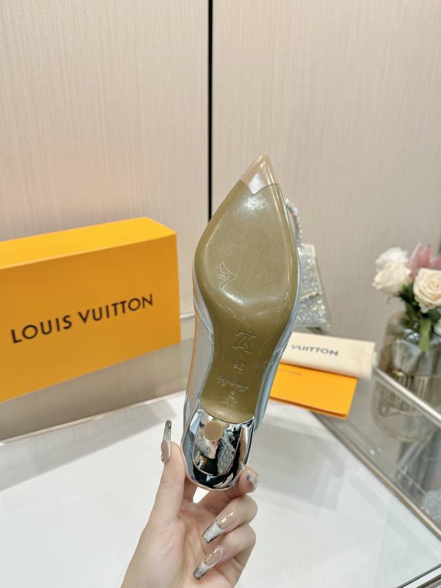 工厂P批P: 、 代购级 、Louis Vuitton 2025官网早春系列!完美楦型、 尖头新品、官网同步更新 小尖头搭配镂空皮条小方扣可调节松紧, Lv五金 “Logo”饰以点缀,细节感拉满、效果视觉盛宴难以掩饰Lv的优雅气质刚刚好、上脚舒适好穿、女人味十足。 新原版倒模楦型,极致1:1形体,做工精致、进口高端面料呈现出精致质感! 面料:进口小羊皮、牛漆皮 老花 牛仔布 内里优质柔软羊皮里、 垫脚:进口山羊皮、 意大利真皮大底 5.5烤漆跟 码数:34-41 34.40、41、定制不退不换