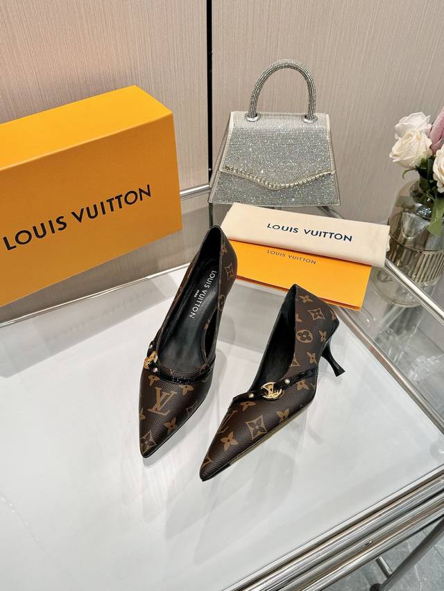 工厂P批P: 、 代购级 、Louis Vuitton 2025官网早春系列!完美楦型、 尖头新品、官网同步更新 小尖头搭配镂空皮条小方扣可调节松紧, Lv五金 “Logo”饰以点缀,细节感拉满、效果视觉盛宴难以掩饰Lv的优雅气质刚刚好、上脚舒适好穿、女人味十足。 新原版倒模楦型,极致1:1形体,做工精致、进口高端面料呈现出精致质感! 面料:进口小羊皮、牛漆皮 老花 牛仔布 内里优质柔软羊皮里、 垫脚:进口山羊皮、 意大利真皮大底 5.5烤漆跟 码数:34-41 34.40、41、定制不退不换