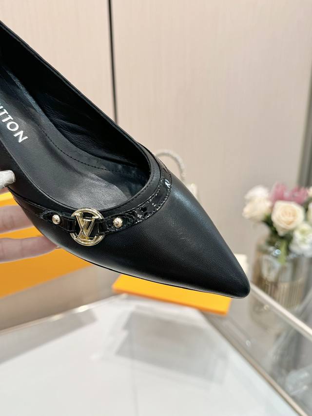 工厂P批P: 、 代购级 、Louis Vuitton 2025官网早春系列!完美楦型、 尖头新品、官网同步更新 小尖头搭配镂空皮条小方扣可调节松紧, Lv五金 “Logo”饰以点缀,细节感拉满、效果视觉盛宴难以掩饰Lv的优雅气质刚刚好、上脚舒适好穿、女人味十足。 新原版倒模楦型,极致1:1形体,做工精致、进口高端面料呈现出精致质感! 面料:进口小羊皮、牛漆皮 老花 牛仔布 内里优质柔软羊皮里、 垫脚:进口山羊皮、 意大利真皮大底 5.5烤漆跟 码数:34-41 34.40、41、定制不退不换