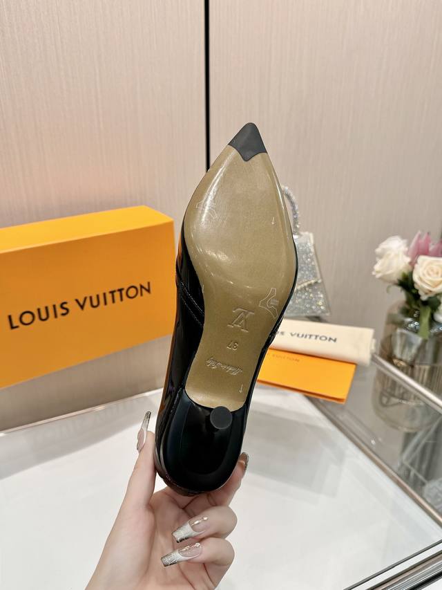 工厂P批P: 、 代购级 、Louis Vuitton 2025官网早春系列!完美楦型、 尖头新品、官网同步更新 小尖头搭配镂空皮条小方扣可调节松紧, Lv五金 “Logo”饰以点缀,细节感拉满、效果视觉盛宴难以掩饰Lv的优雅气质刚刚好、上脚舒适好穿、女人味十足。 新原版倒模楦型,极致1:1形体,做工精致、进口高端面料呈现出精致质感! 面料:进口小羊皮、牛漆皮 老花 牛仔布 内里优质柔软羊皮里、 垫脚:进口山羊皮、 意大利真皮大底 5.5烤漆跟 码数:34-41 34.40、41、定制不退不换
