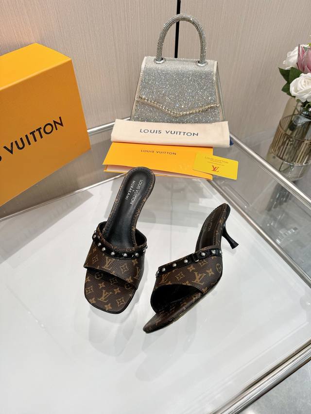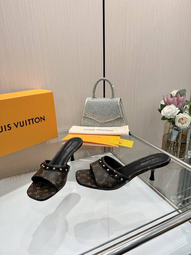 工厂P批P: 、 代购级 、Louis Vuitton 2025官网早春系列!完美楦型、 新品中跟拖鞋、官网同步更新 Lv五金 “Logo”饰以点缀,细节感拉满